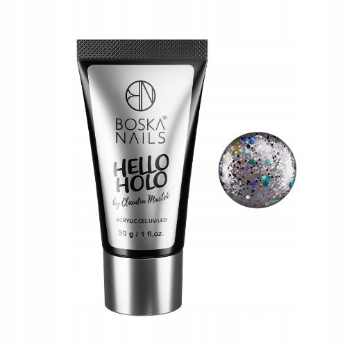 ❤️ Поєднання переваг гелю та акрилу, а також мільйон частинок в одному продукті - Hello Holo - це акрил-гель, створений у співпраці з інструктором Клаудією Мастек. Divine Instructor Claudia спеціалізується на конструюванні стайлінгу - для цього ідеально підійде акрил-гель Hello Holo! Ви знайдете в ньому мерехтливі частинки сріблястого кольору і, звичайно ж, голографічні!