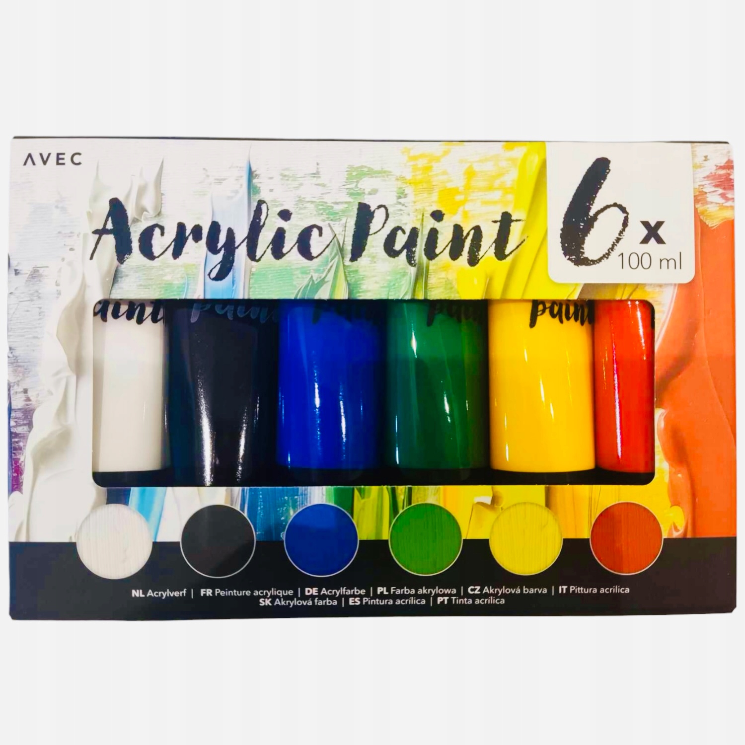 АКРИЛОВІ ФАРБИ 600 мл НАБІР АКРИЛОВИХ ФАРБ ОСНОВНІ КОЛЬОРИ СИЛЬНА КРИВІСТЬ