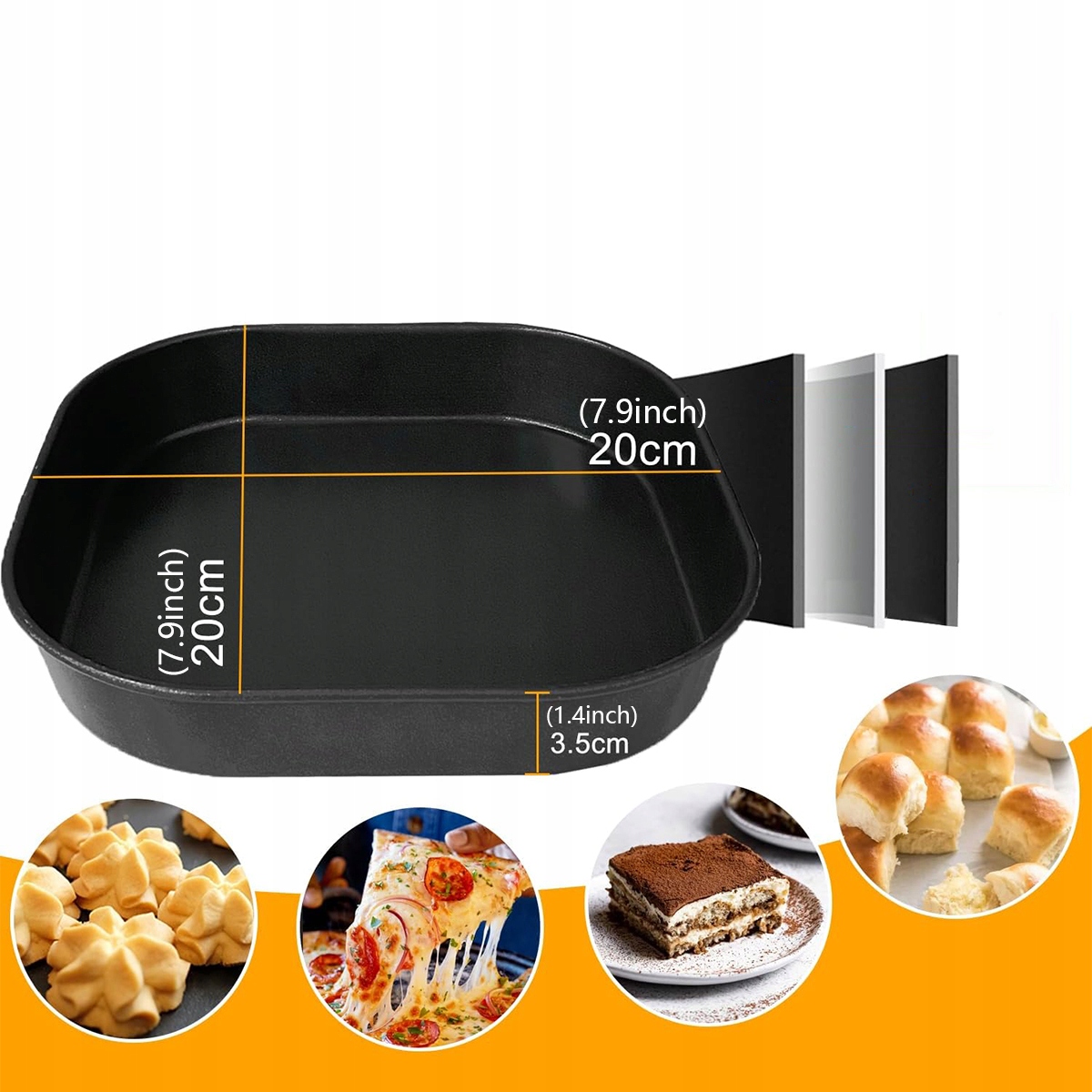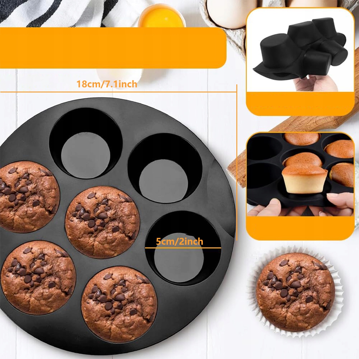 Форми для тортів і піци виготовлені з високоякісної вуглецевої сталі, стійкої до високих температур і не деформуються; Форма для кексів на 7 отворів виготовлена з харчового силікону. Його антипригарна поверхня дозволяє легко виймати мафіни, не пошкоджуючи їх форму та зовнішній вигляд.