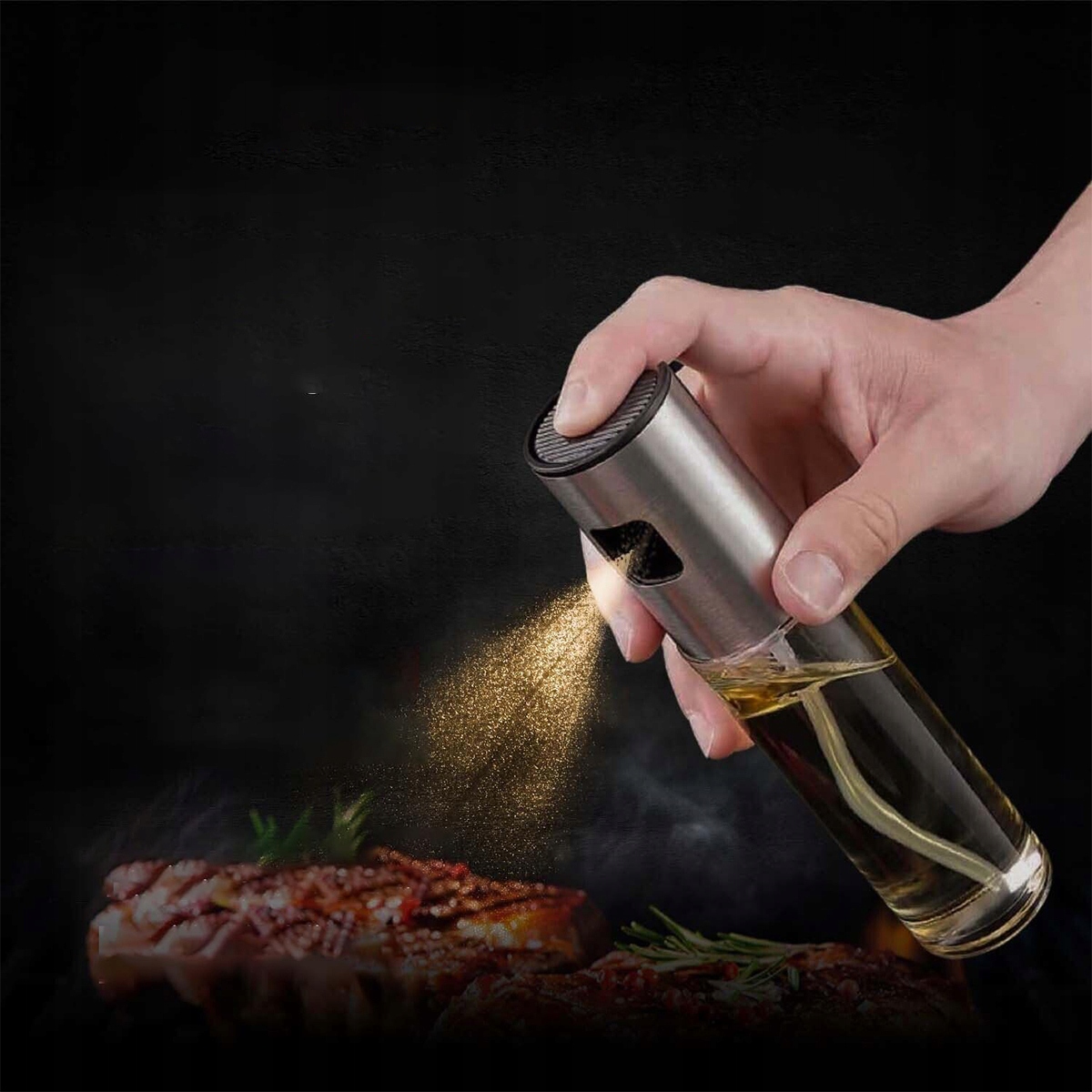 Пляшка з розпилювачем виготовлена з безпечного для харчових продуктів скла і вміщує 110 мл олії. Віялоподібна насадка подає приблизно 1 г олії за раз, що дозволяє точно контролювати калорії та робить пристрій придатним для широкого спектру посуду.