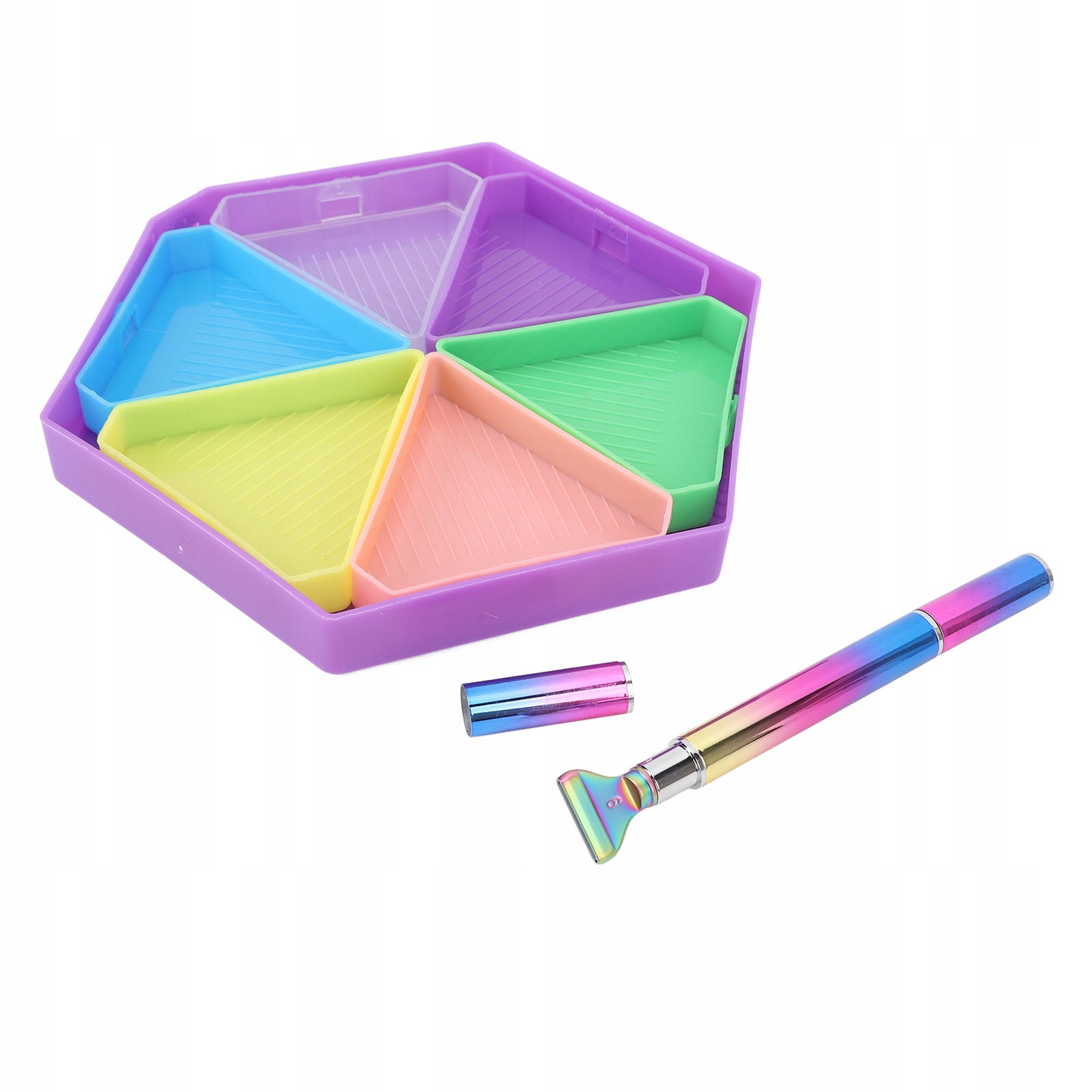 Функція:1. Набір підносів для малювання кристалами: унікальний шестикутний дизайн підносів дозволяє одночасно використовувати різні кольори страз. Цей кришталевий піднос значно підвищує ефективність і відповідає вашим різноманітним потребам.