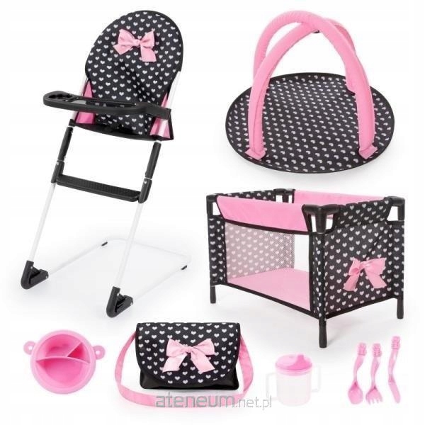 Цей чарівний набір аксесуарів для ляльок складається з: годування стільців, ліжечок для ляльок, ігрові килимки, сумки та столові прибори. Стілець має прекрасний дизайн і підходить для ляльок до 46 см. Завдяки інтегрованим таким дітям вони можуть комфортно нагодувати свою ляльку прикріпленою тарілкою, виделкою, ложкою або пляшкою. Аксесуари можна зберігати в місті. Щоб зробити задоволення ще приємнішим, ляльку можна поставити під ігровий килимок. Набір також включає туристичне ліжечко, яке забезпечить солодкі мрії про маленького коханого. Ідеальний набір для геніальної веселої гри з лялькою. Доставка в прекрасній виставковій коробці. Вміст: