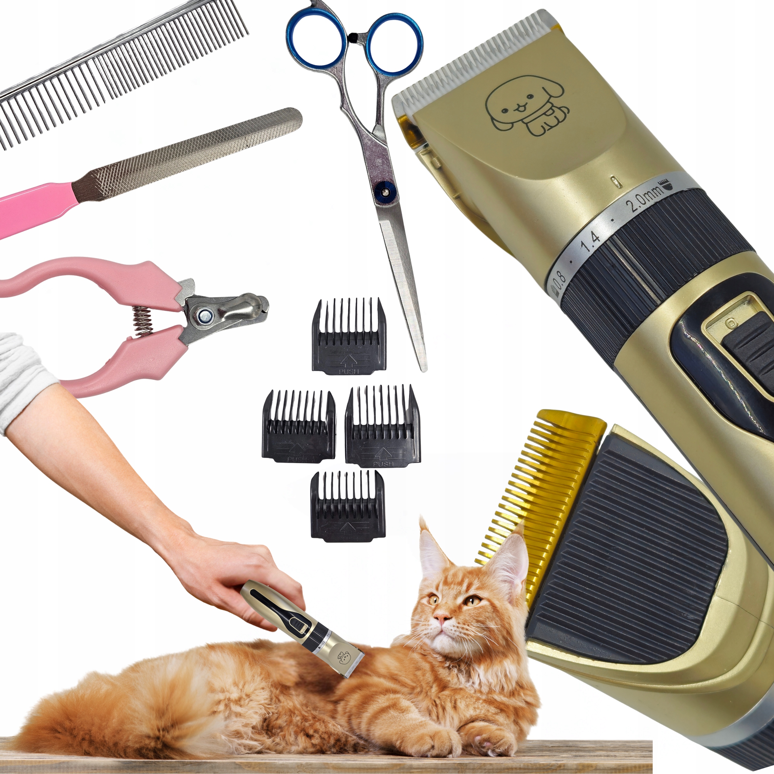 Набір вкладень: Машина має 4 Змінні вкладення з довжиною 3, 6, 9 та 12 мм , завдяки якому адаптація довжини стрижки до потреб домашнього улюбленця стає надзвичайно комфортною та інтуїтивною❕