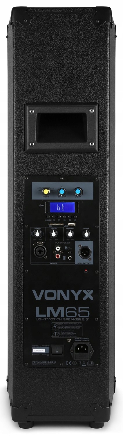 Активний динамік LM65 з максимальною потужністю 400 Вт. Він ідеально підходить як звукова система для вечірок, для домашніх або караоке виступів. Він забезпечує чудовий звук у поєднанні з захоплюючими світловими ефектами та бездротовим підключенням Bluetooth. Колонка також підходить для караоке.