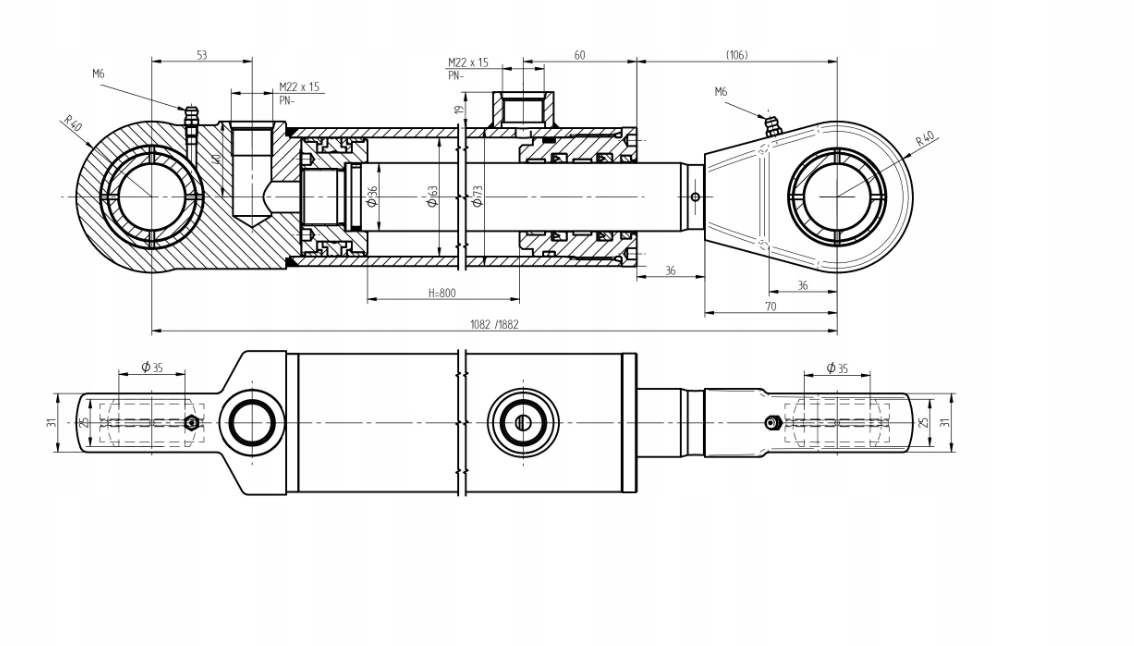 актуатор двосторонній, хід 80см. 63/36/800/1082