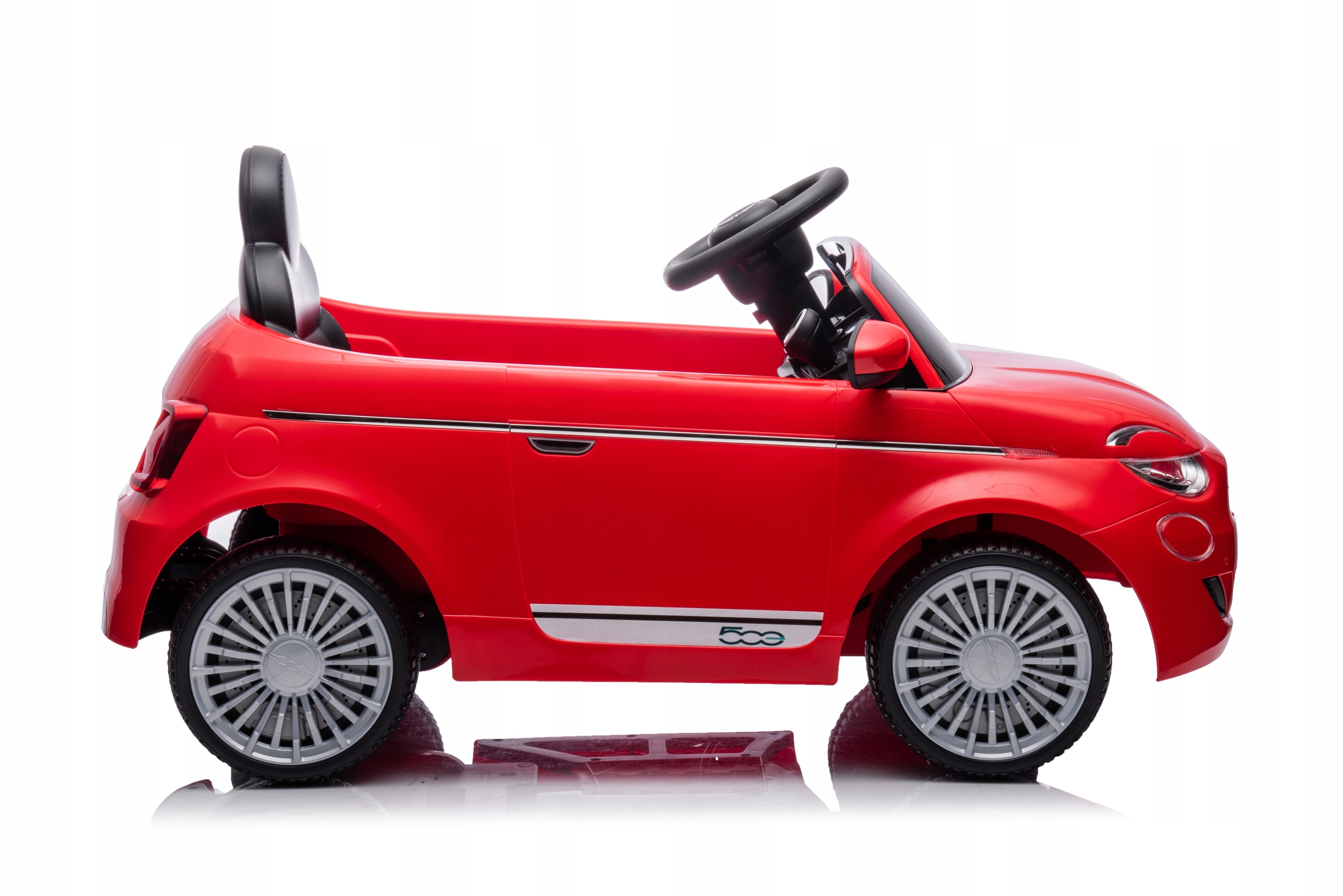 У сидіння є кермо, низьке сидіння з ременем безпеки та ергономічна спинка, що полегшує посадку та висадку. Автомобіль розганяється повільно і плавно. Крім того, електромобіль Fiat 500 оснащений дисплеєм з музикою, що є ідеальним враженням. Він також має переднє та заднє освітлення.