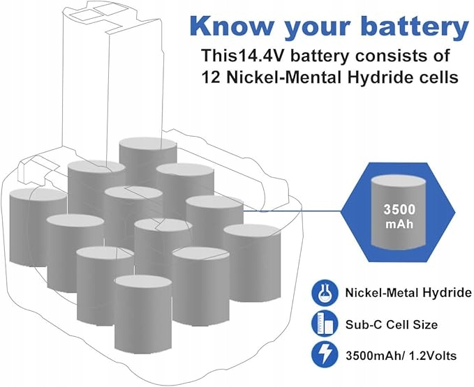 - Нікель-металогідридний акумулятор, як і оригінальний нікель-кадмієвий акумулятор, добре сумісний з інструментами та може заряджатися оригінальним нікель-кадмієвим або нікелевим акумулятором - Зарядний пристрій для компакт-дисків MH. Ми виготовили батареї з елементами Ni-MH, які мають велику ємність, довший термін служби, відсутність ефекту пам’яті та забруднення навколишнього середовища. Тому ми рекомендуємо використовувати Ni-MH акумулятори, які набагато кращі, ніж Ni-Cd акумулятори.