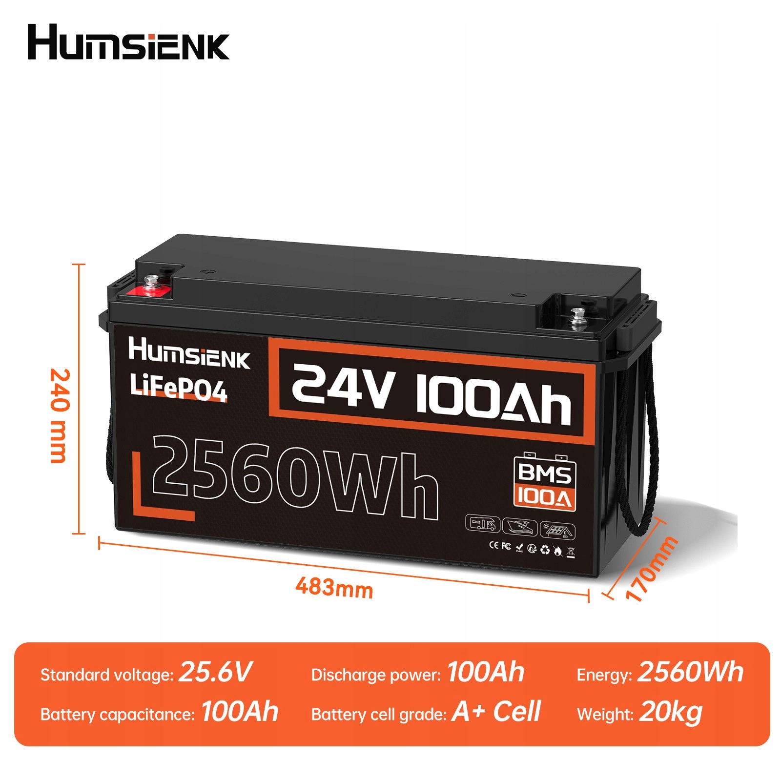 ⚡humsienk 24v 100Ah lifepo4-premium літієвий акумулятор для домашнього будинку, łódź, UPS, фотоелектрики