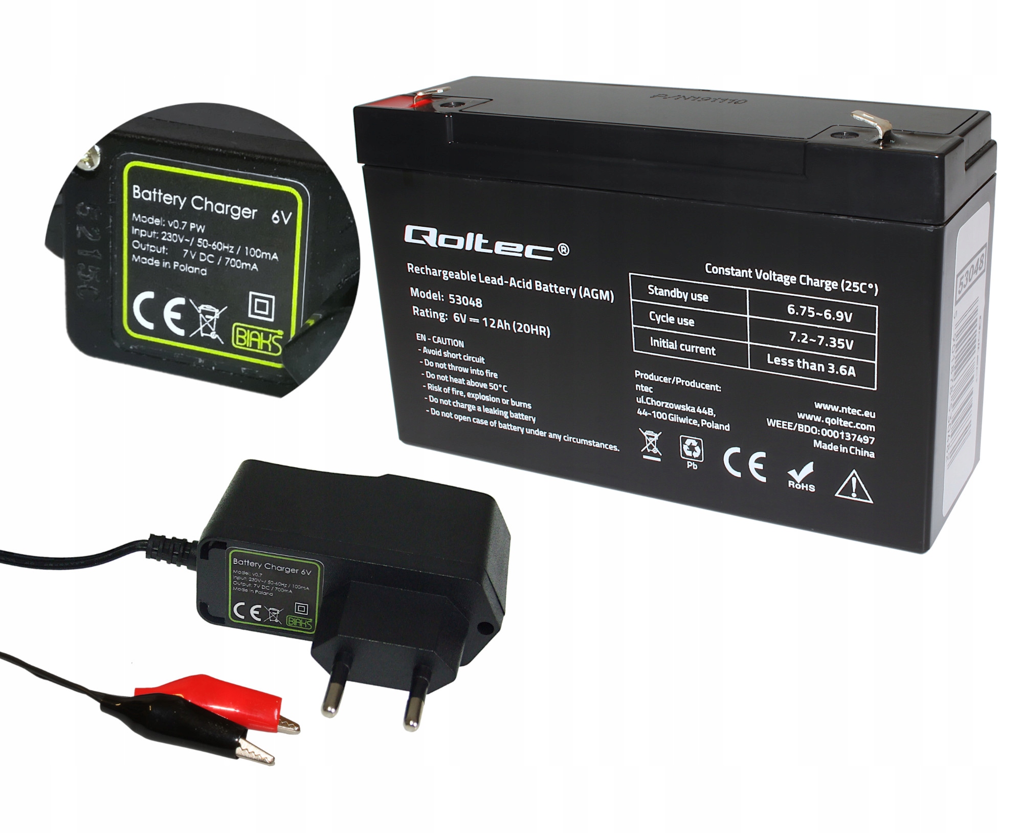 Акумулятор Qoltec AGM VRLA 6V 12Ah + ЗАРЯДНИЙ ПРИСТРІЙ