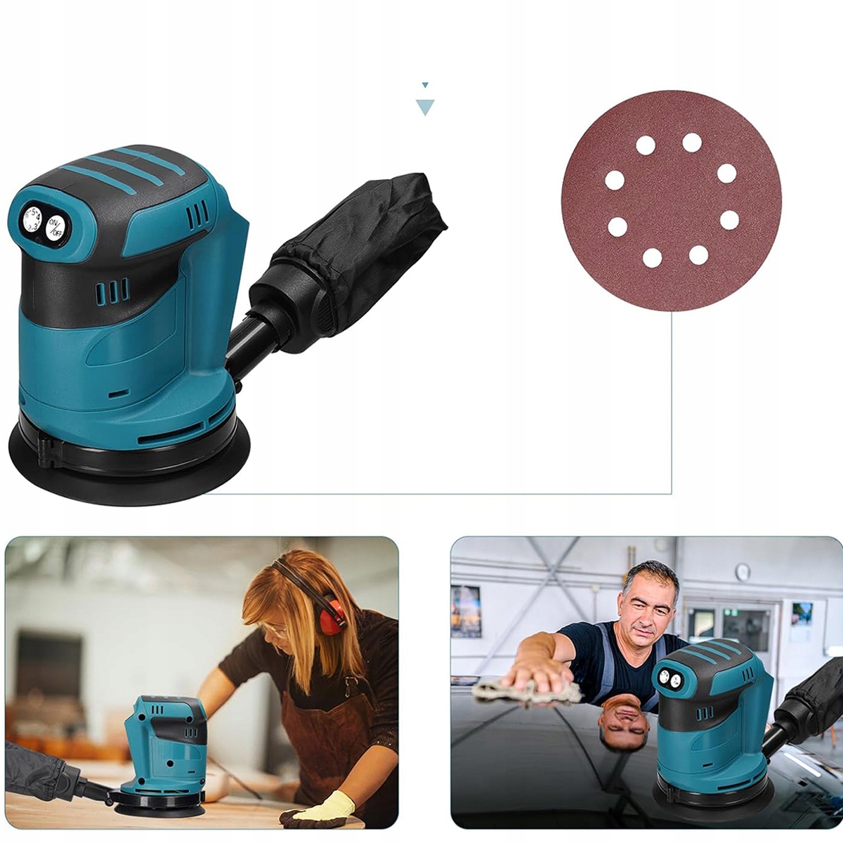 Акумуляторна орбітальна шліфувальна машина з 2 акумуляторами 18 В 3,0 А·год і 1 зарядним пристроєм, безщітковим двигуном, 6 швидкостями, 12 наждачними паперами Ø125 мм/5 дюймів у комплекті для шліфування та полірування деревини (сумісний з акумулятором Makita 18 В) h1>