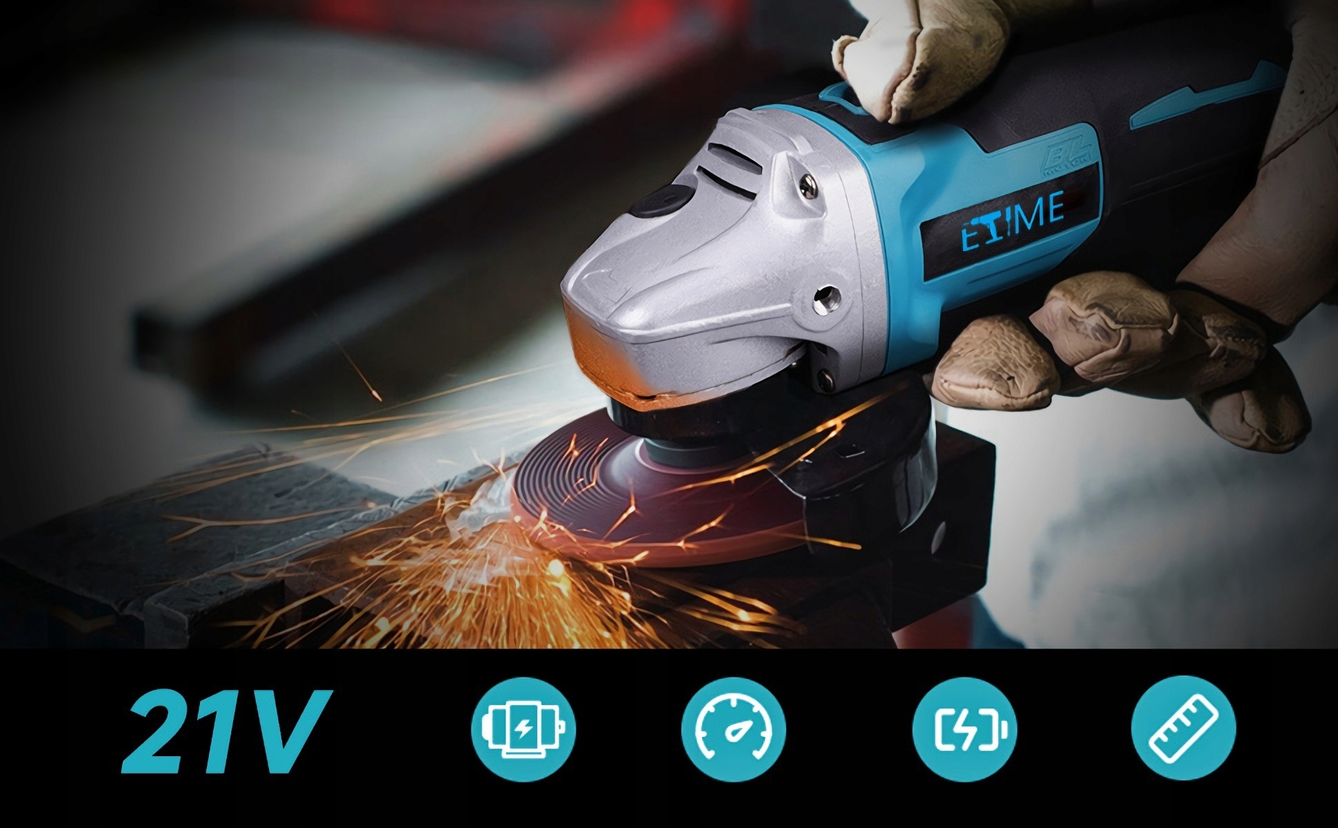 АКУМУЛЯТОРНА КУТОВА ШЛІФУВАЛЬНА МАШИНА до 21В 125мм + КОМПЛЕКТ