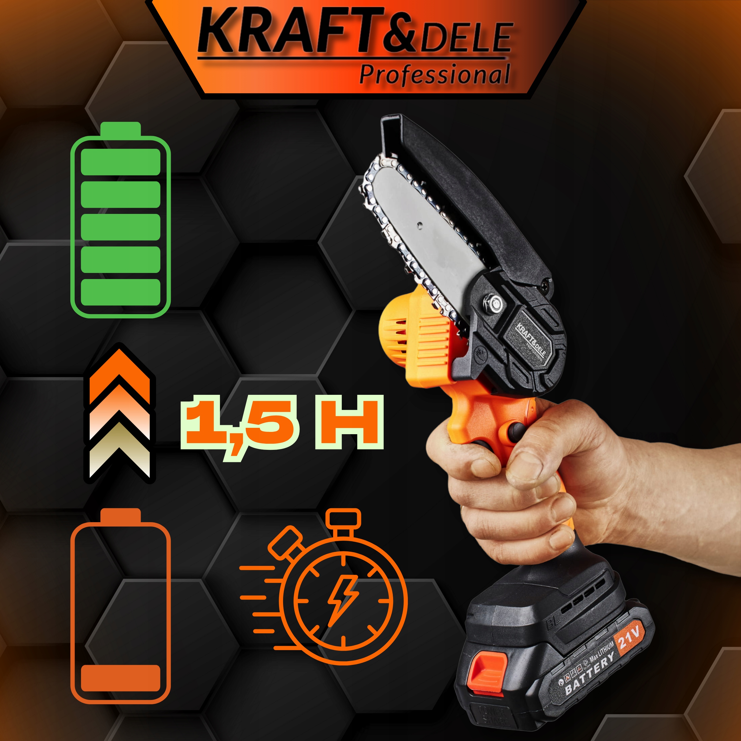 ✔️ Завдяки ефективному двигуну, гострим ланцюгам із твердого металевого сплаву та двом акумуляторам ємністю 1500 мАг ви завершуєте роботу швидшеніж будь-коли раніше раніше.