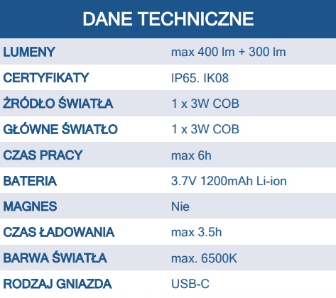 - Лампи виготовлені з найкращих матеріалів, таких як ABS, TPR, нейлон або метал, що гарантує його довговічність і надійність b> і система захисту від перезаряду та розряду. Усі моделі мають сертифікат IP65, що робить їх повністю водонепроникними, і в той же час корпус залишається стійким до забруднення.