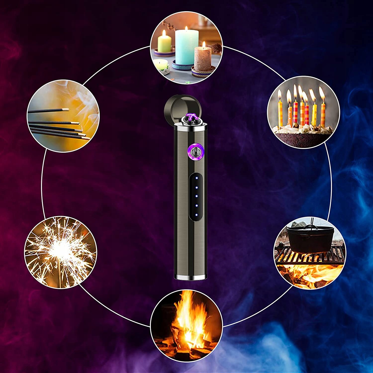 ✅ USB-зарядка: Запальничка не потребує газу чи рідина, п’ять кольорових точок вказують на рівень заряду акумулятора.