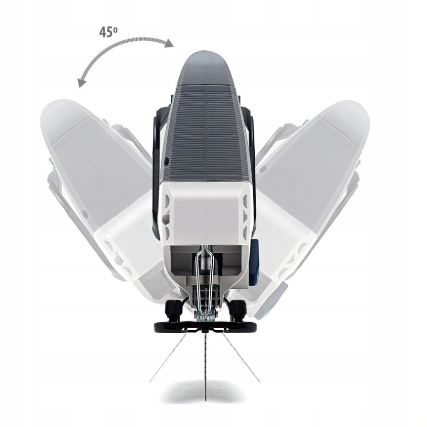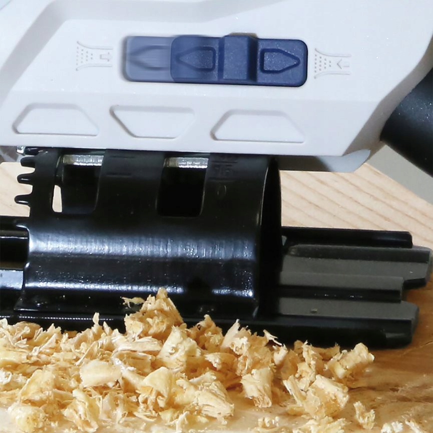 Потужний двигун пропонує повністю регульовану швидкість від 0 до 2500 об./хв (20 мм ходу) завдяки електронному контролю швидкості, а три маятникові налаштування дозволяють вам ще більше вдосконалювати різання. Зрізи під кутом від 0 до 45° можливі шляхом регулювання сталевої опорної пластини, яка також включає додаткову напрямну, щоб тримати прямі зрізи прямими.