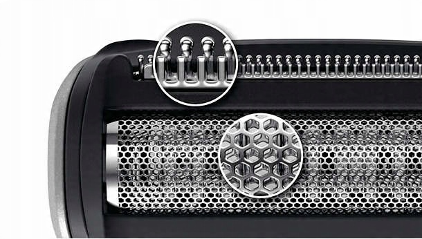 Бритвена головка оснащена гіпоалергенною сіткою та запатентованими закругленими наконечниками, які захищають шкіру під час гоління. Двосторонні тримери підстригають довші волоски , які потім збриваються сіткою, що забезпечує кращий результат.
