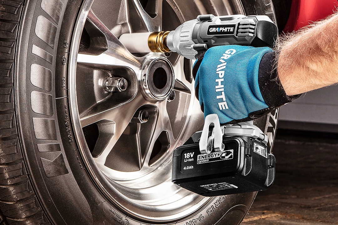 Ударний гайковий ключ ідеально підходить для робіт у майстерні, пов’язаних із закручуванням і відкручуванням гвинтів. Він забезпечує роботу на високих швидкостях і забезпечує високий крутний момент. Робоча ручка адаптована до найпопулярніших ударних гнізд. Гальмо електромотора дозволяє швидко зупинити шпиндель. Також полегшує роботу світлодіодне підсвічування робочої зони. Спеціальна форма та оптимальна довжина забезпечують ефективність у будь-яких умовах роботи. Ключ працює від літій-іонних акумуляторів 18V GRAPHITE Energy+.