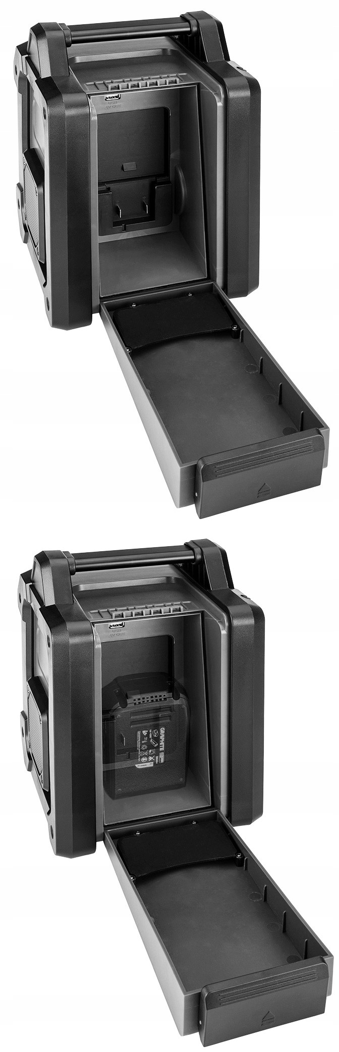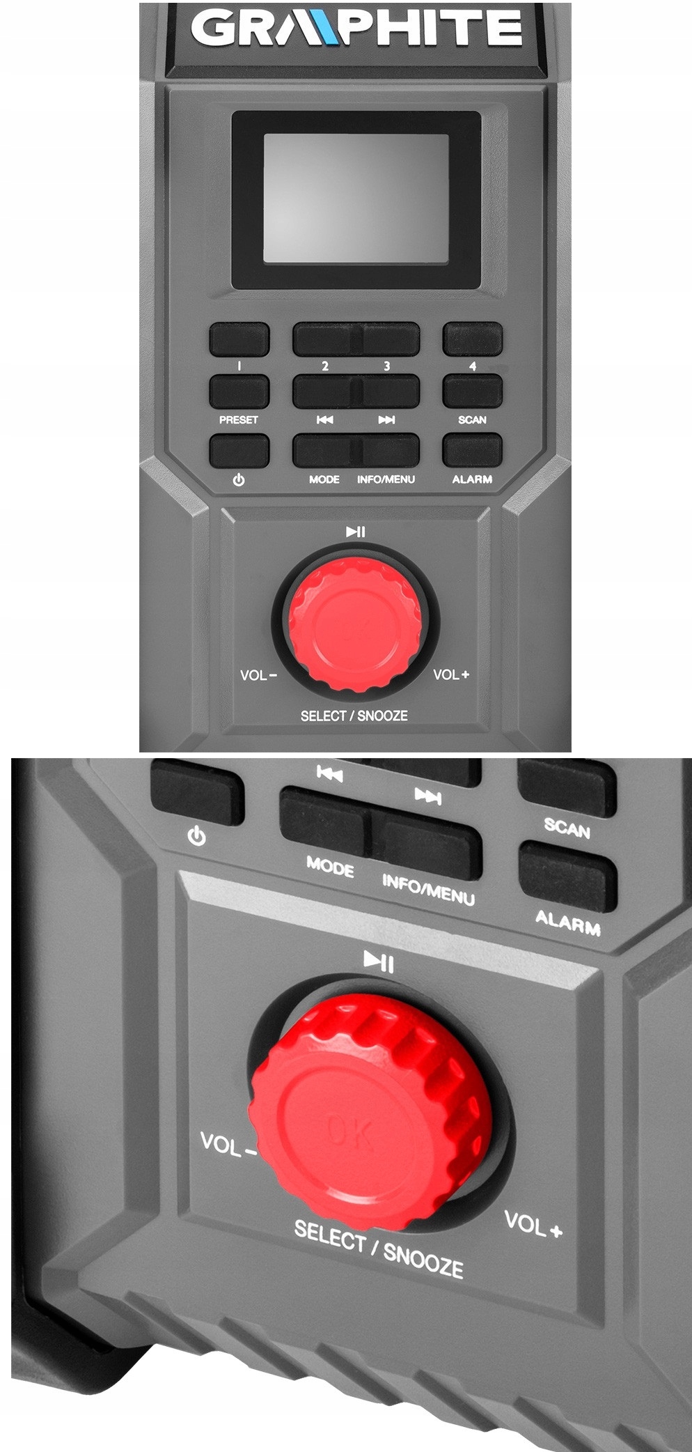 Надзвичайно міцний будівельний радіоприймач GRAPHITE з одночасним живленням від мережі та акумулятора. Він належить до сімейства продуктів Energy +, які працюють на базі ефективних літій-іонних акумуляторів на 18 В.