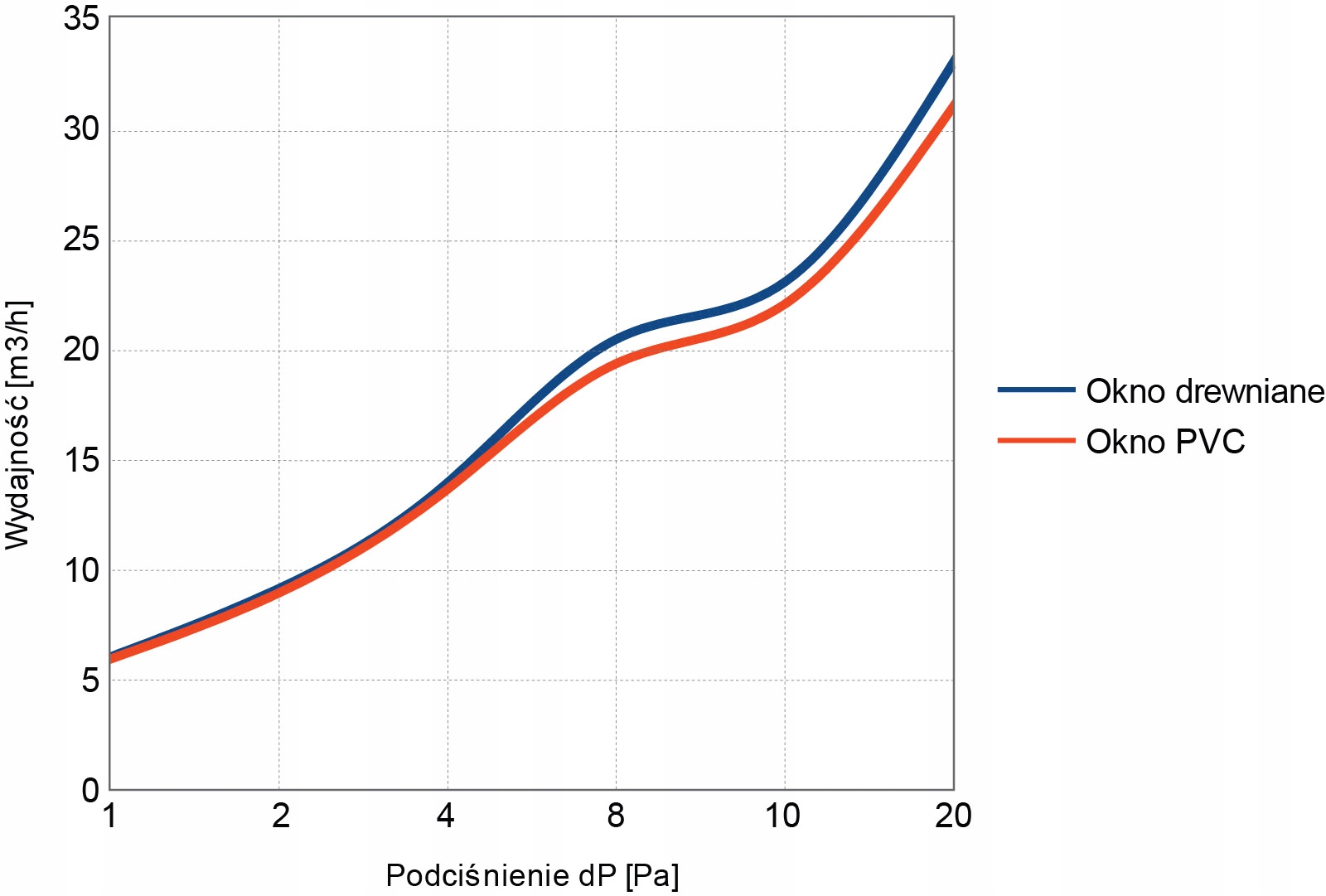 - При різниці тиску ззовні та всередині будівлі dP= 20 Па ефективність становить 33 м³/год;