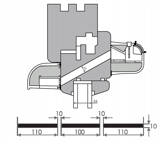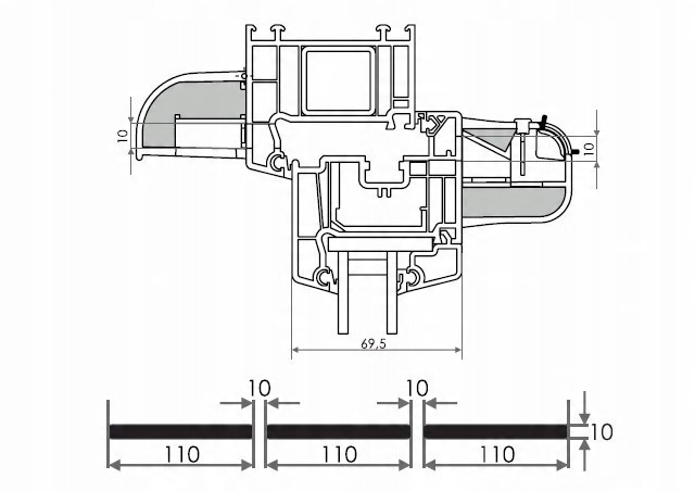 Вентилятори QAIR призначені для монтажу у ПВХ або дерев'яні вікна. Монтаж передбачає створення горизонтального вентиляційного отвору у верхній частині вікна за допомогою фрезерного верстата розмірів і форми, як показано на кресленні. Вентиляційний отвір кріпиться гвинтами.