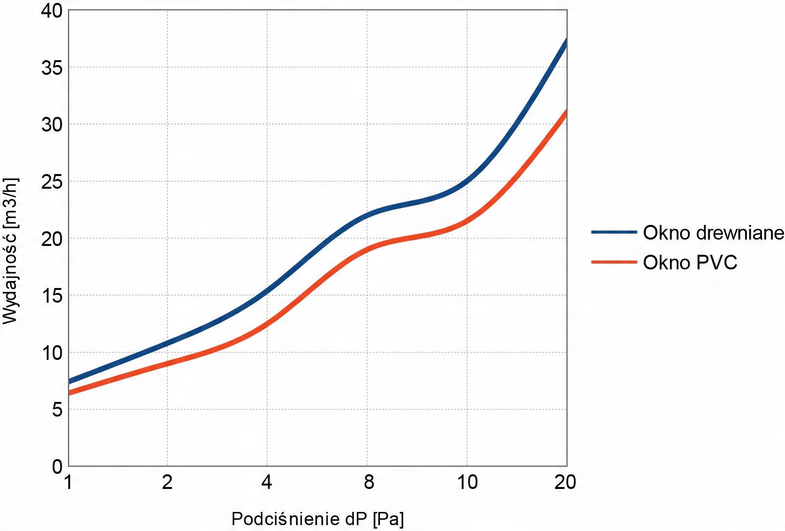 - При різниці тиску ззовні та всередині будівлі dP= 20 Па ефективність становить 37 м³/год;