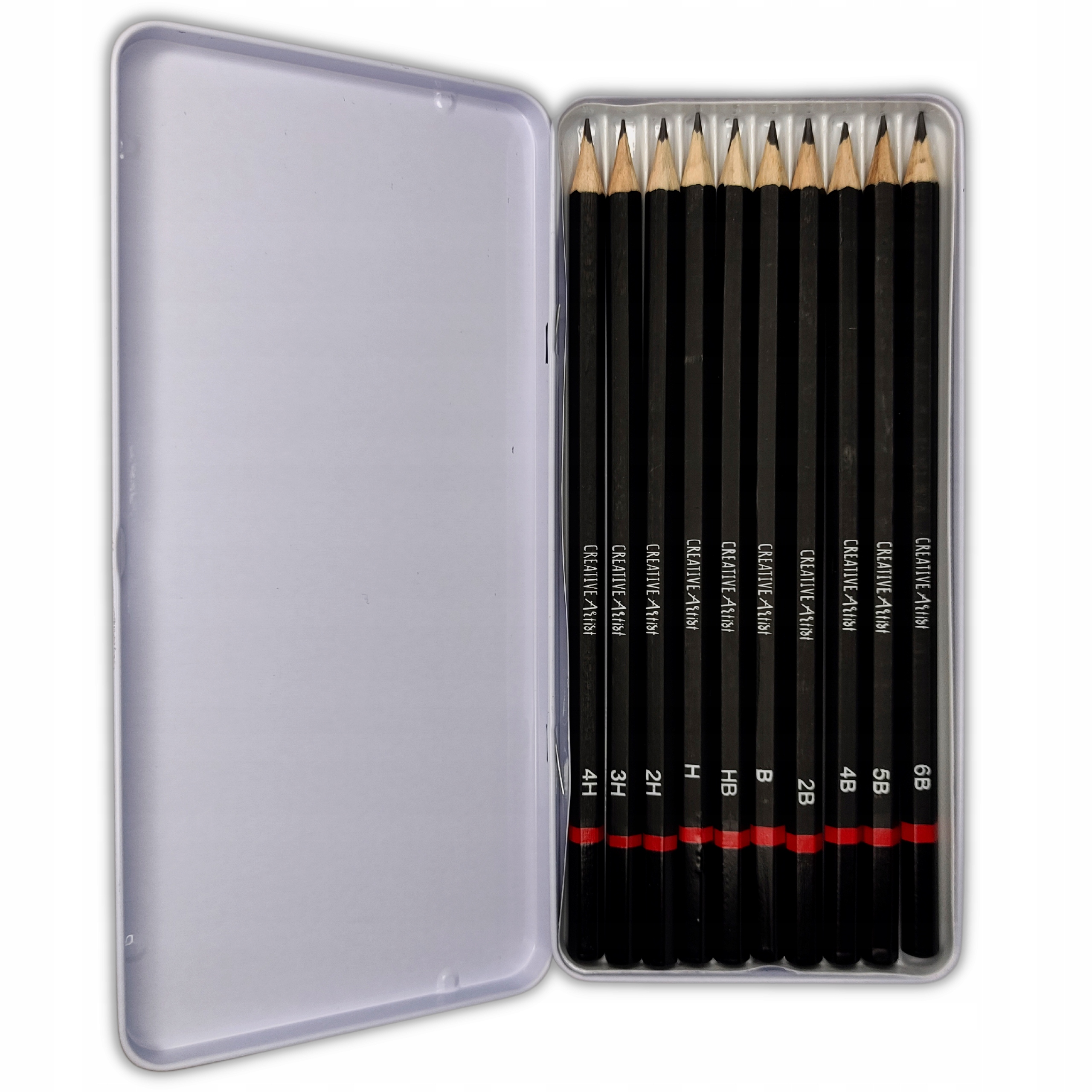 - 10 олівців (6B, 5B, 4B, 2B, B, HB, H, 2H, 3H, 4H)