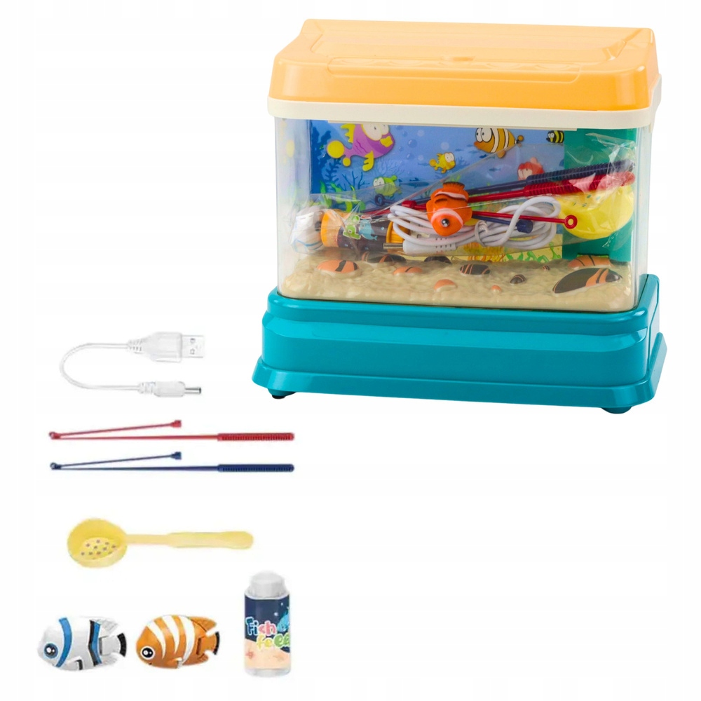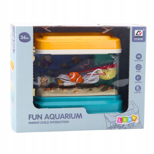 - НАВЧАЛЬНИЙ АКВАРИУМ З ПІДСВІТЛЕННЯМ ТА МАГНІТНИМИ РИБКАМИ Відкрийте для себе захоплюючий підводний світ із цим інтерактивним освітнім акваріумом! Завдяки можливості наповнення водою іграшка стає реалістичним міні-світом, який порадує кожного маленького дослідника океану. Розвиваючі та декоративні функції роблять акваріум не тільки іграшкою, але й елегантним нічником. Світлодіодне підсвічування, ефект водяних бульбашок і приємна мелодія створюють розслаблюючу атмосферу. У набір входить акваріум з кришкою, 2 магнітні рибки, 2 вудки, ситечко, ємність для «рибного корму» і USB кабель. Це ідеальний подарунок для дітей від 3 років, який розвиває спритність і терпіння, а також відкриває їх у чарівний світ підводних пригод. Розміри акваріума: 20,5 х 17,5 х 12 см Розмір упаковки: 27,5 x 22 x 12,5 см