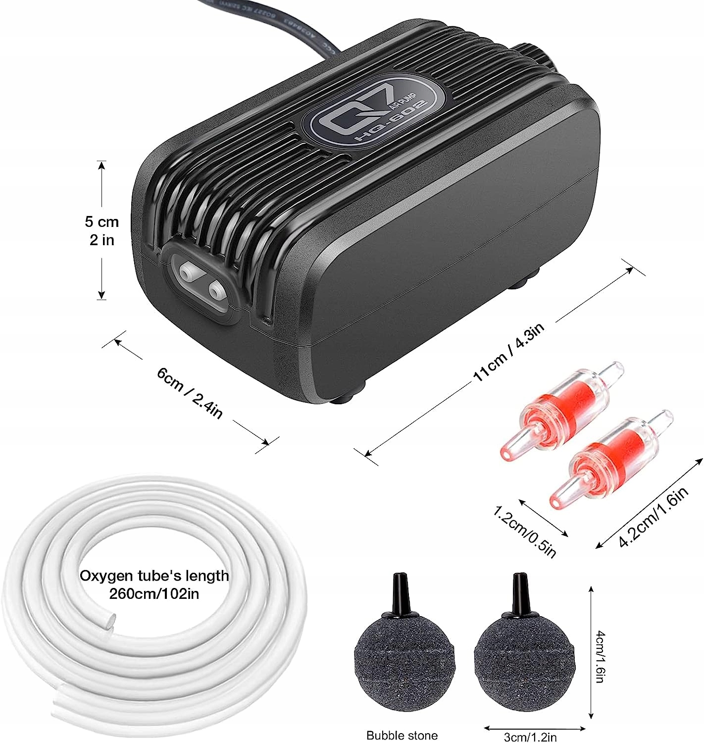 - 【Безпека та енергозбереження】 Оснащений захистом від перегріву та перевантаження, акваріумний повітряний насос працює безперервно безперервно високе споживання енергії.
