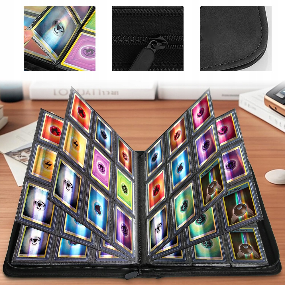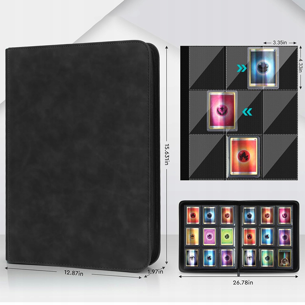 -🏷️Має 14 двосторонніх сторінок і 9 кишеньз кожного боку, що вміщує до 252 карток для верхнього завантаження.