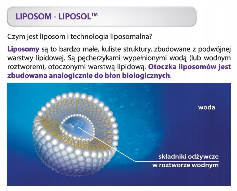 Ліпосольний продукт TM технологія поглинання преміум -класу в ліпосомній формі - це глобальна інновація з надзвичайно ефективним харчовим ефектом у галузі добавки, підтверджених низкою лабораторних та клінічних тестів. Ліпосоми ліпозольтму безпечні для здоров'я та демонструють високу біодоступність. Усі використовувані інгредієнти ретельно відбираються, мають ряд тестів і надходять лише від сертифікованих постачальників.