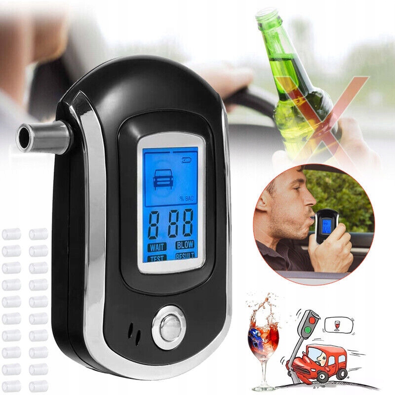 АЛКОГОЛЬТЕСТЕР, ЦИФРОВИЙ АНАЛІЗАТОР ДИХАННЯ, РК-ДИСПЛЕЙ, РОТИ, 20 ШТ.