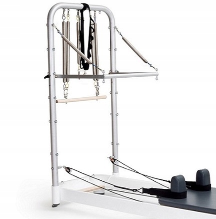 За допомогою цього унікального обладнання для пілатесу ви можете легко створити комплексну систему тренувань, включаючи вправи на реформері, на фіксованому килимку з використанням вишки, на рухома платформа реформатора з використовуючи вежу та на килимку або в положенні стоячи з обох боків вежі.