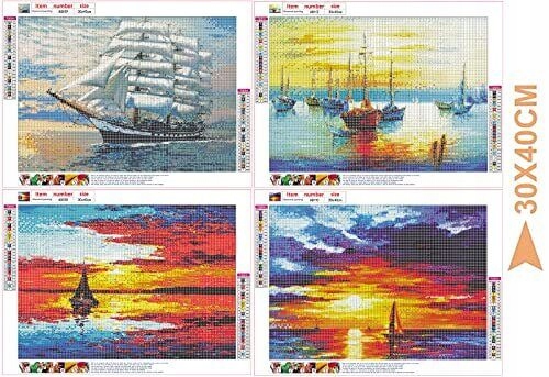 Алмазна живопис, 5D вишивка - Пейзажі, набір з 4 різних візерунків, 30х40 см.