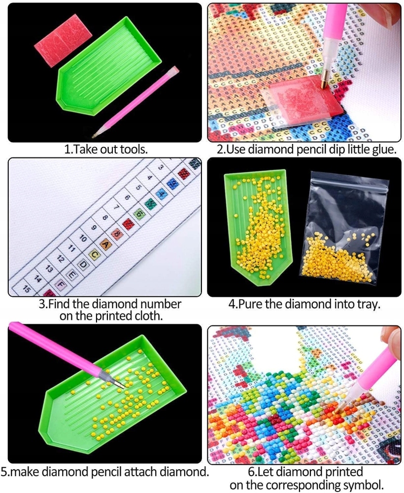 Набір містить усі необхідні елементи та інструменти для створення приголомшливого 5D-зображення розміром 30 x 40 см.