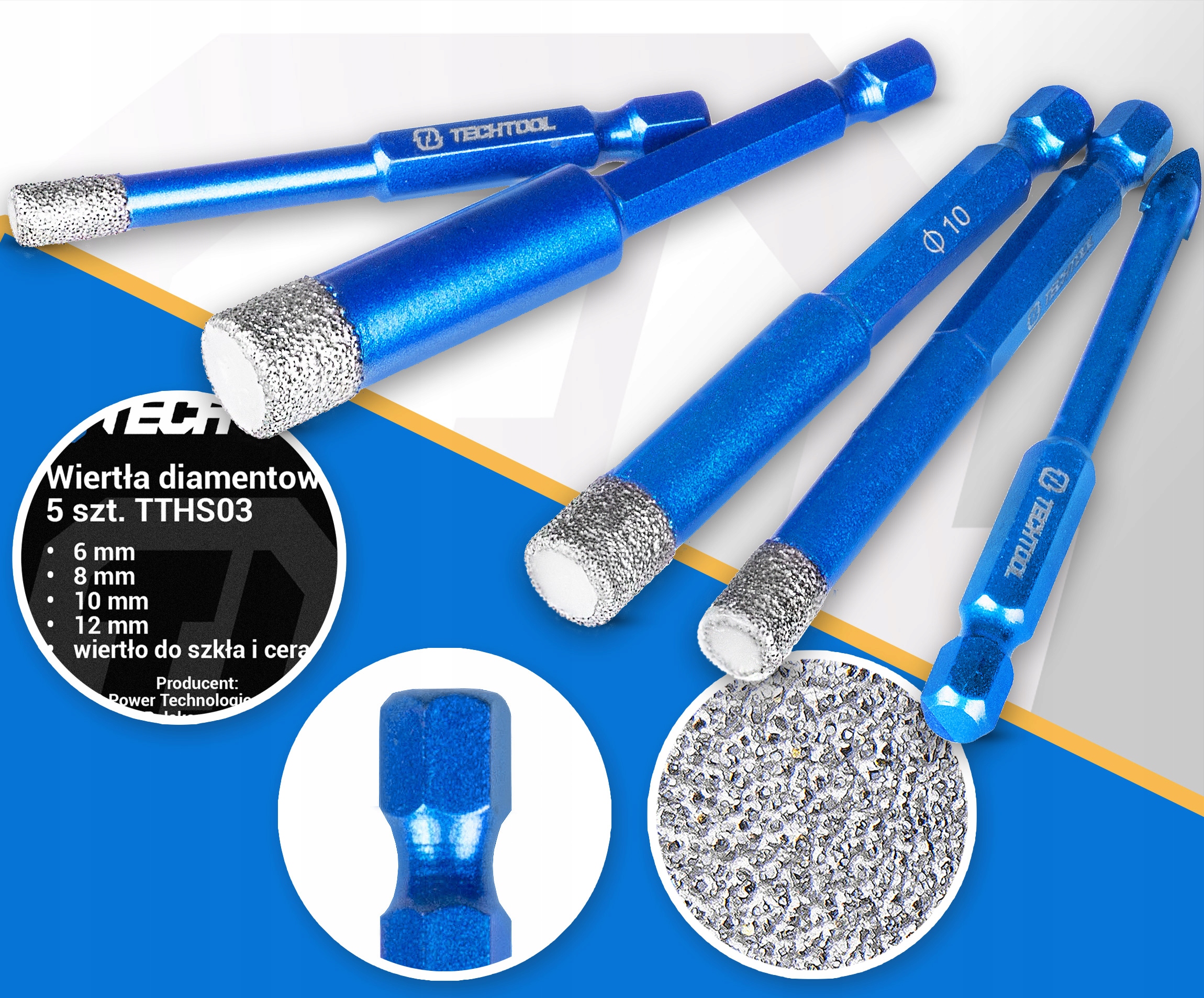 - Розміри алмазних свердел: 6 мм, 8 мм, 10 мм, 12 мм