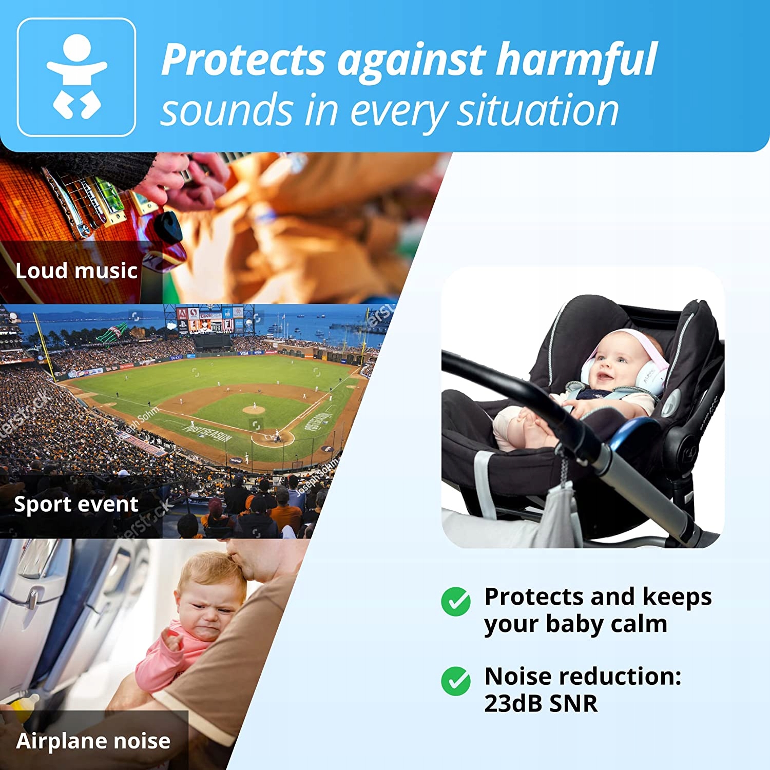 - захищає слух немовлят і маленьких дітей від шкідливого шуму та гучної музики