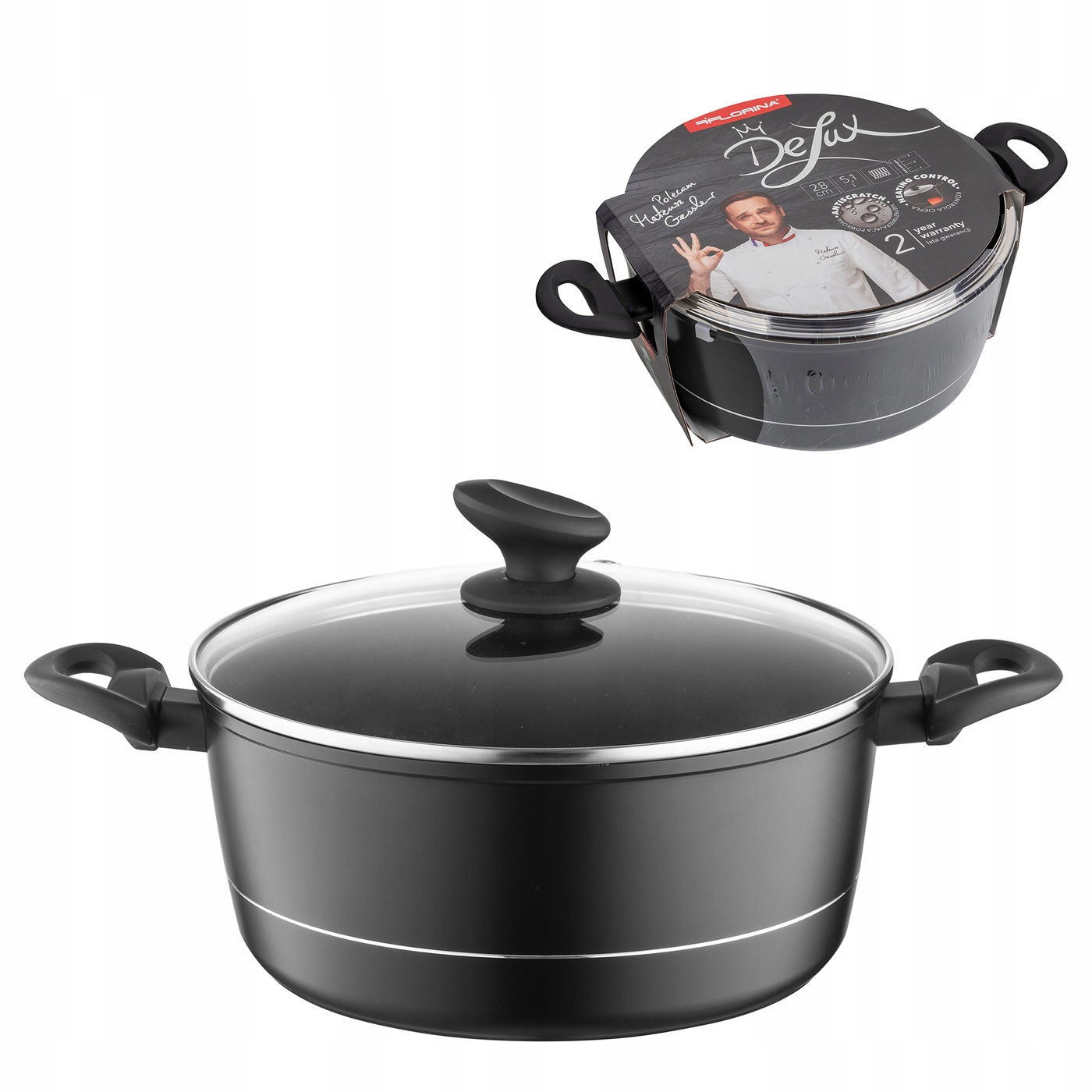 Відкрийте для себе нові кулінарні враження в комфорті власної кухні! Це можливо завдяки новій лінії каструль і сковорідок Delux by Mateusz Gessler від бренду Florina. Елегантний, міцний і надійний. Серед пропозицій цієї лінії ви знайдете каструлю діаметром 28 см та об’ємом 6,5 л.