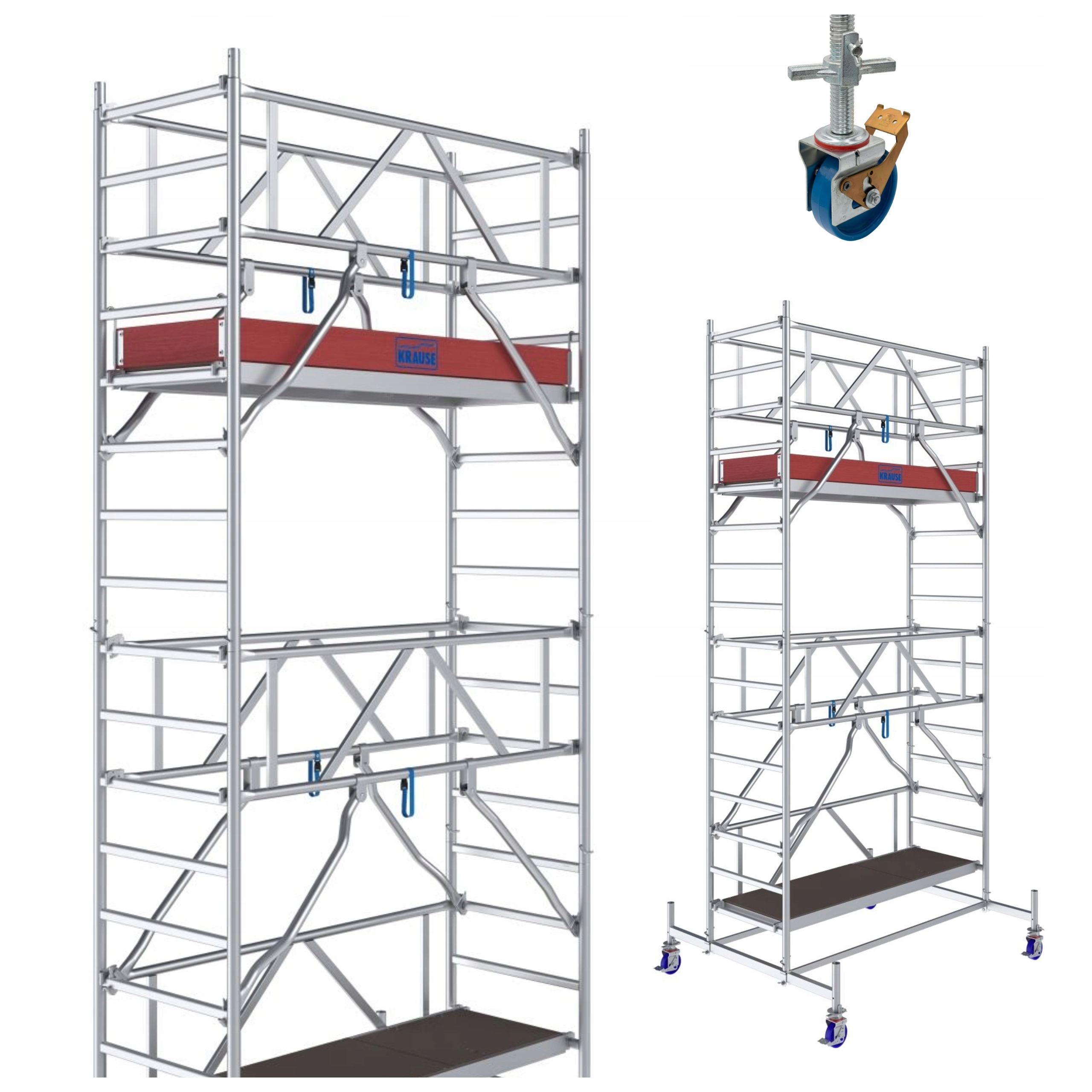 - 6-точкове кріплення поручнів забезпечує максимальну стійкість на висоті. Унікальна самоблокуюча система затискачів KRAUSE дозволяє легко, швидко та безпечно збирати та розбирати