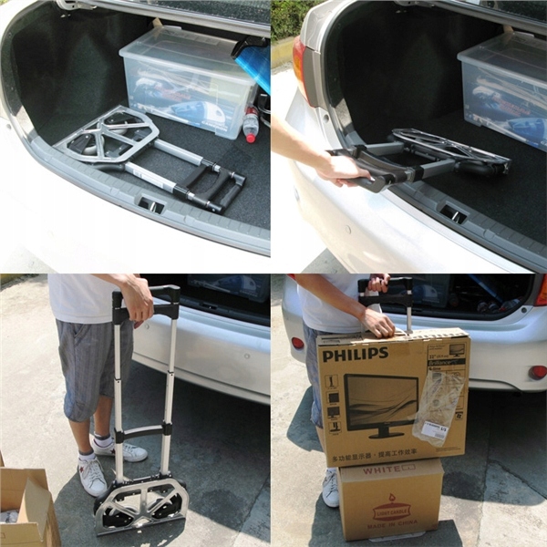 💥ten Транспортний візок був зроблений з світла, але міцний алюміній і має максимальну здатність навантаження до 75 кг . Він оснащений двома великими гумовими колесами, які забезпечують рідкий і безсоромний рух . Телескопічна ручка може бути відрегульована з точки зору 63 см - 90 см - 100 см , що забезпечує зручність використання. Складна конструкція Дозволяє складати візок плоскою, що полегшує зберігати в транспортних засобах, відсіках для зберігання або гаражів.