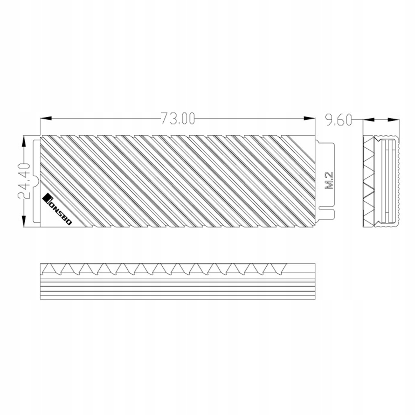 Повністю алюміній + анод піскоструминний, з нахиленою на 45° вітровою направляючою структурою, краще вписується в повітря корпусу канал, швидко розсіює тепло від накопичувача, мініатюрний розмір забезпечує кращу сумісність
