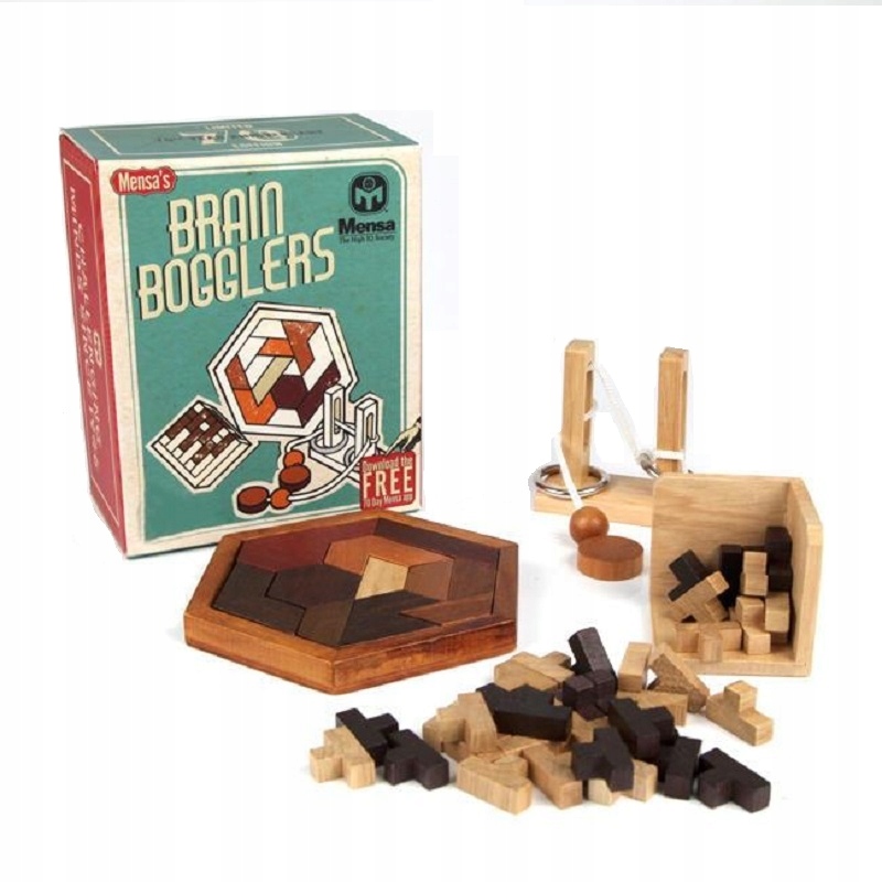 ŁAMIGŁÓWKI LOGICZNE PUZZLE 3W1 MENSA ZAGADKI LOGICZNE DREWNIANE PREZENT