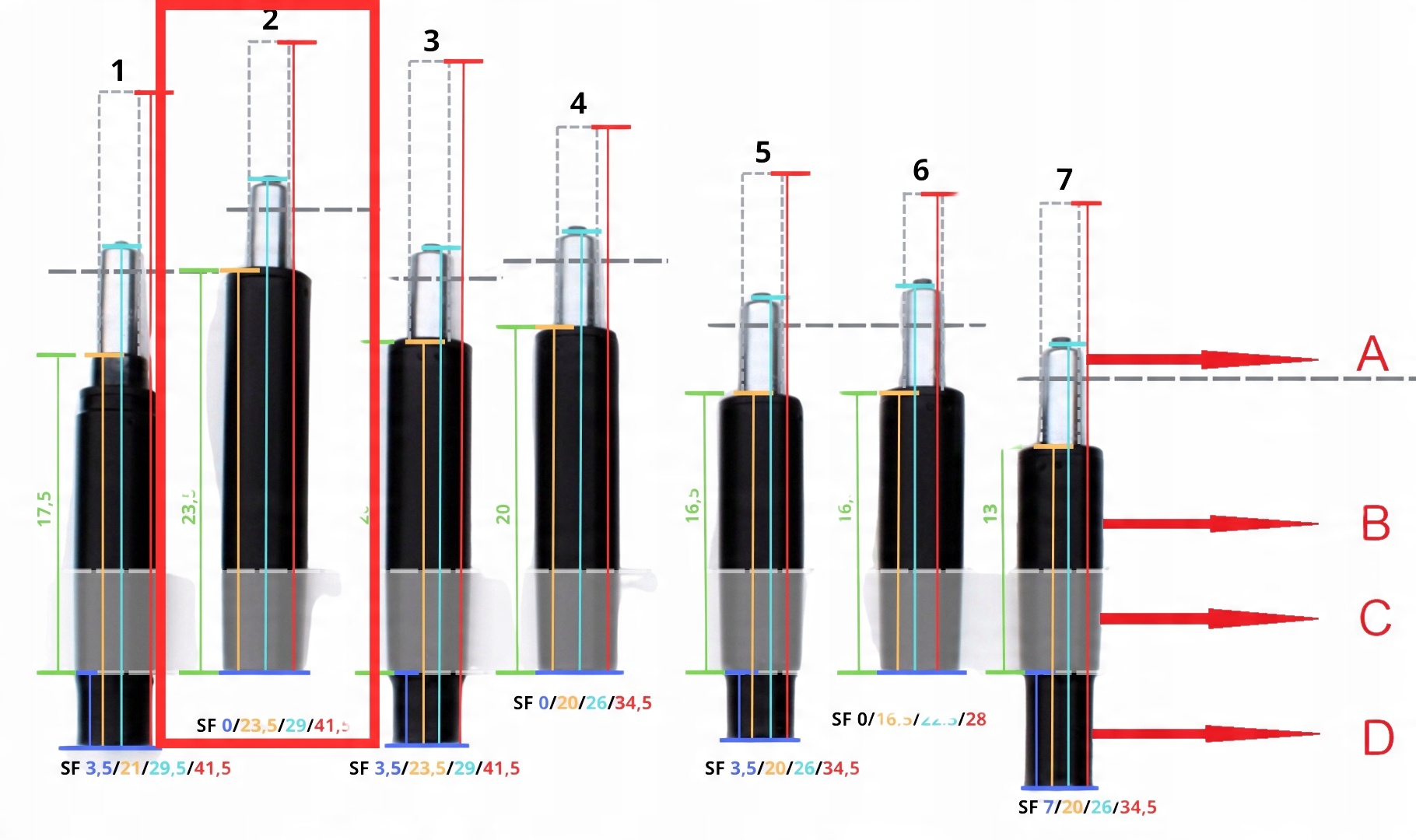 A - Конусоподібна шпилька. Вдавлюється в сидіння або механізм. Діаметр штифта в самому верху близько 27 мм і стає 28 мм.