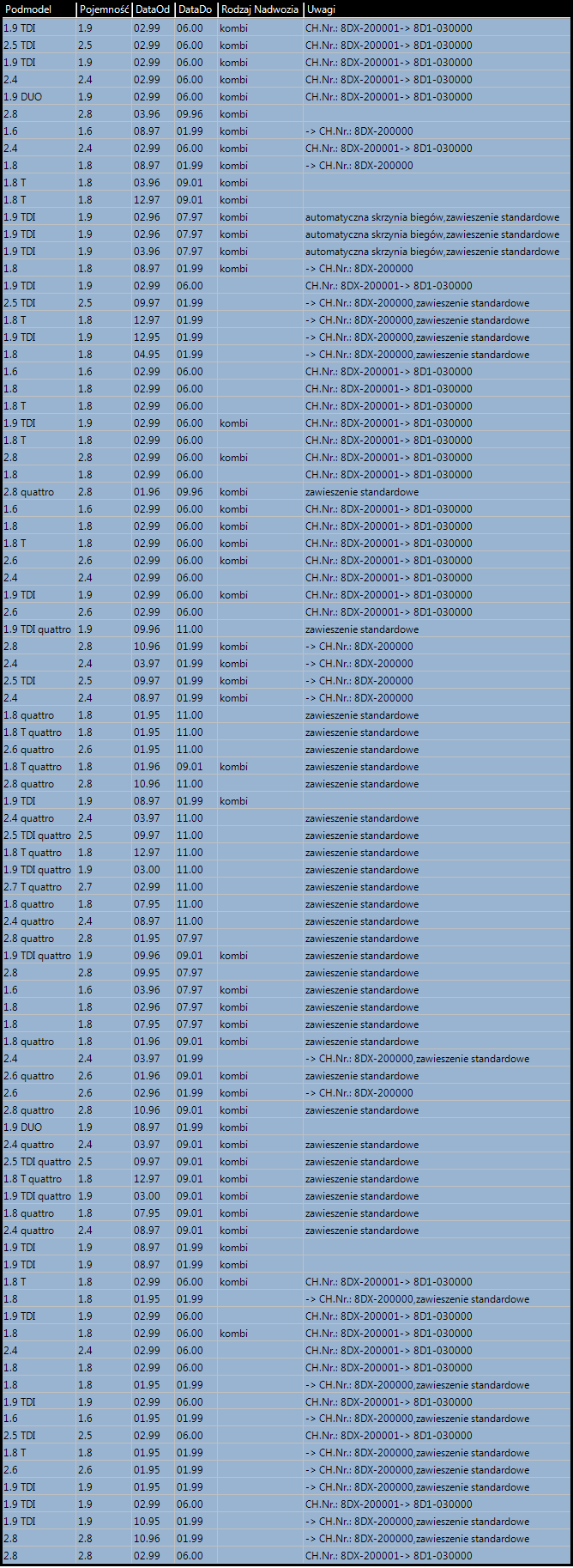 AUDI: A4 (8D2, B5) SDN/KOMBI