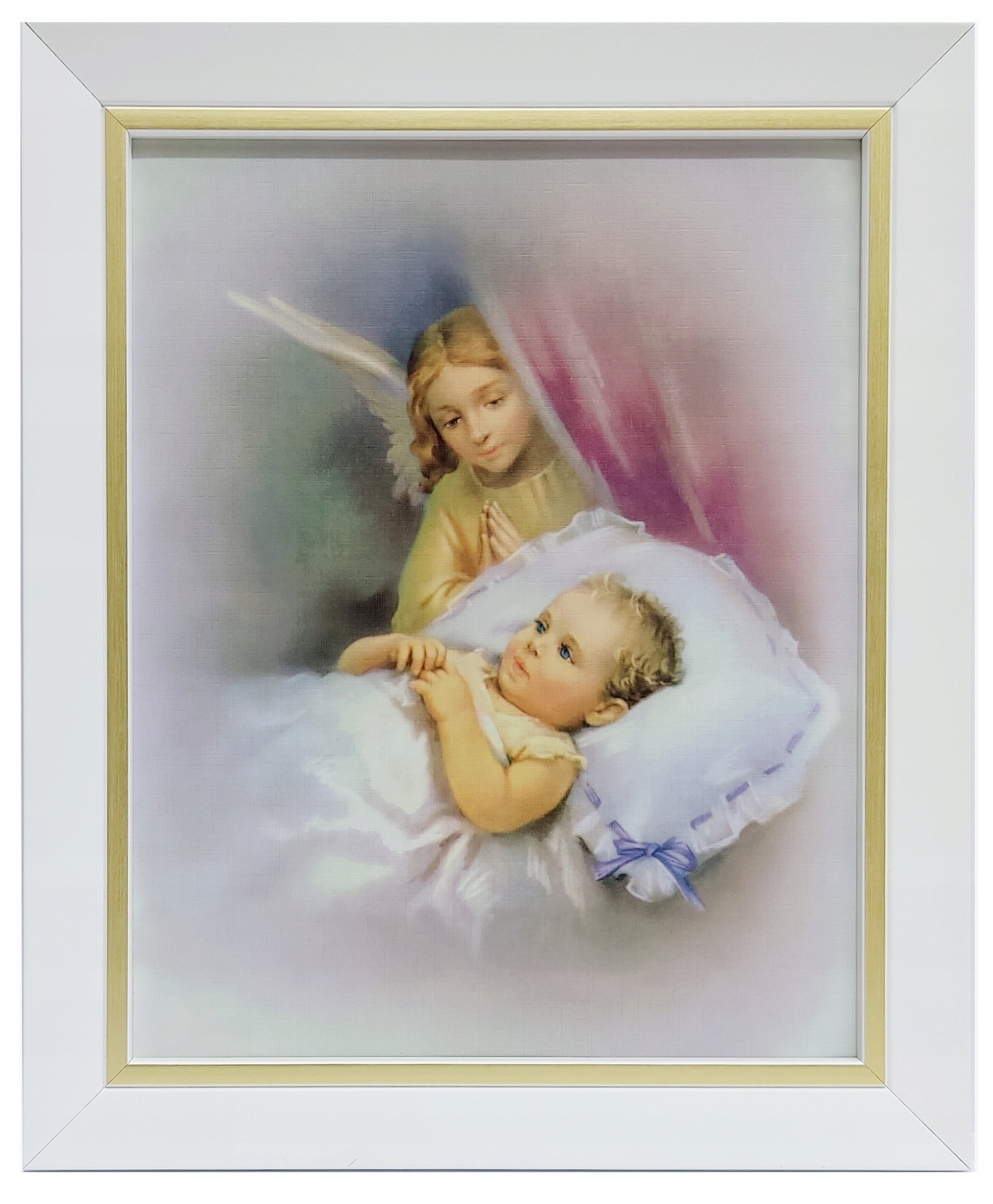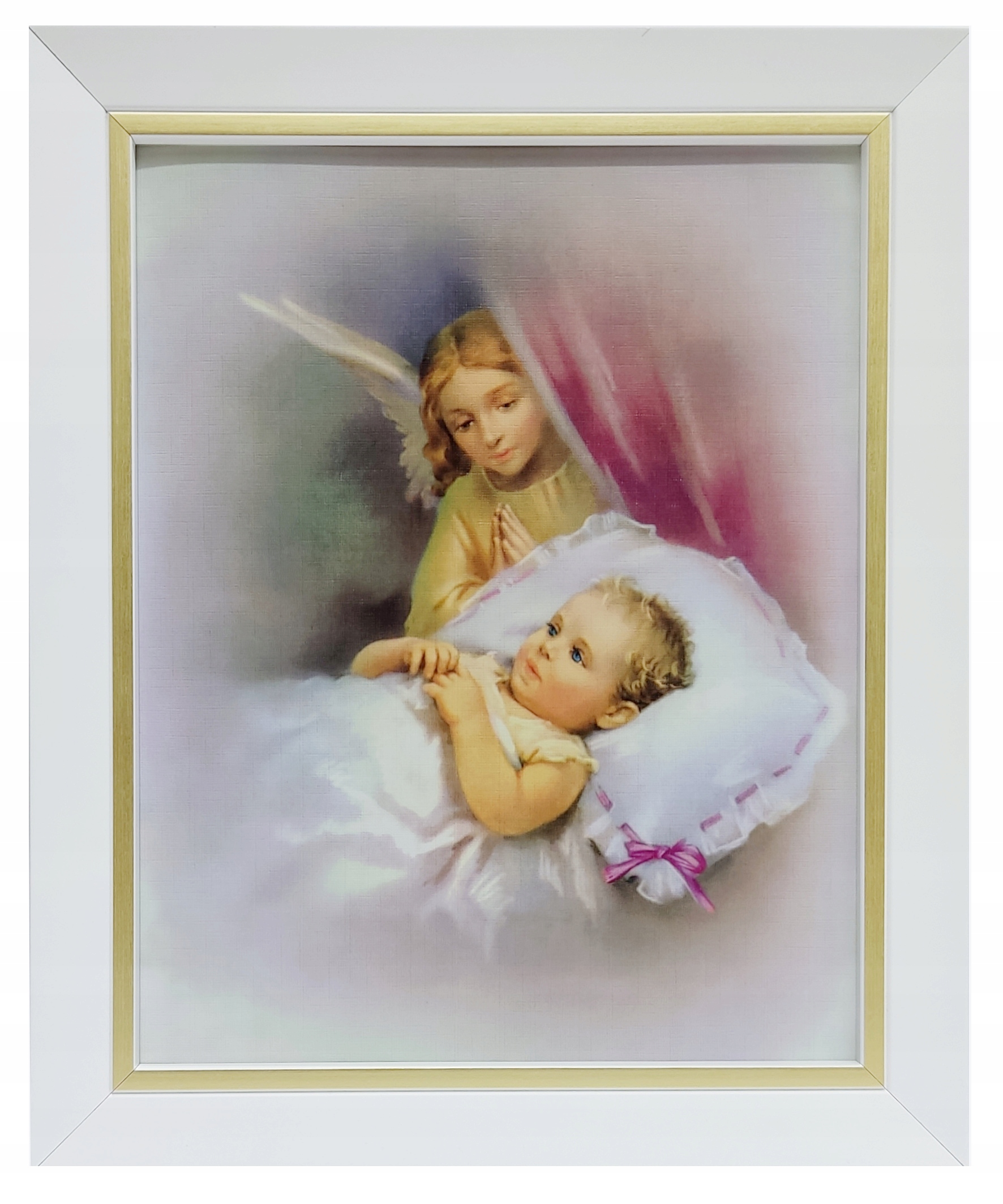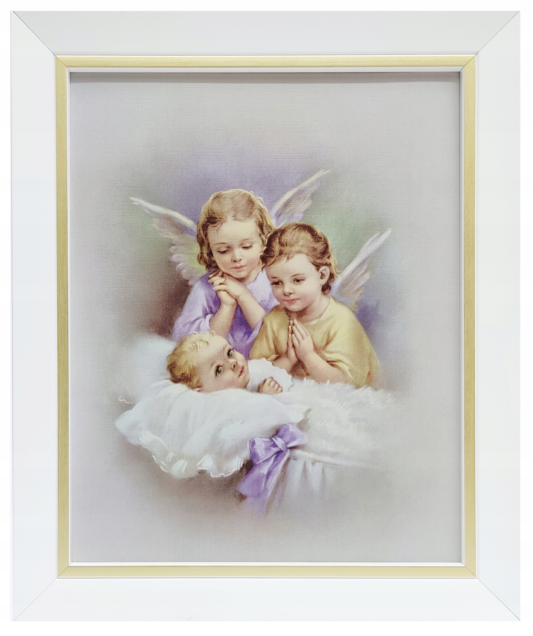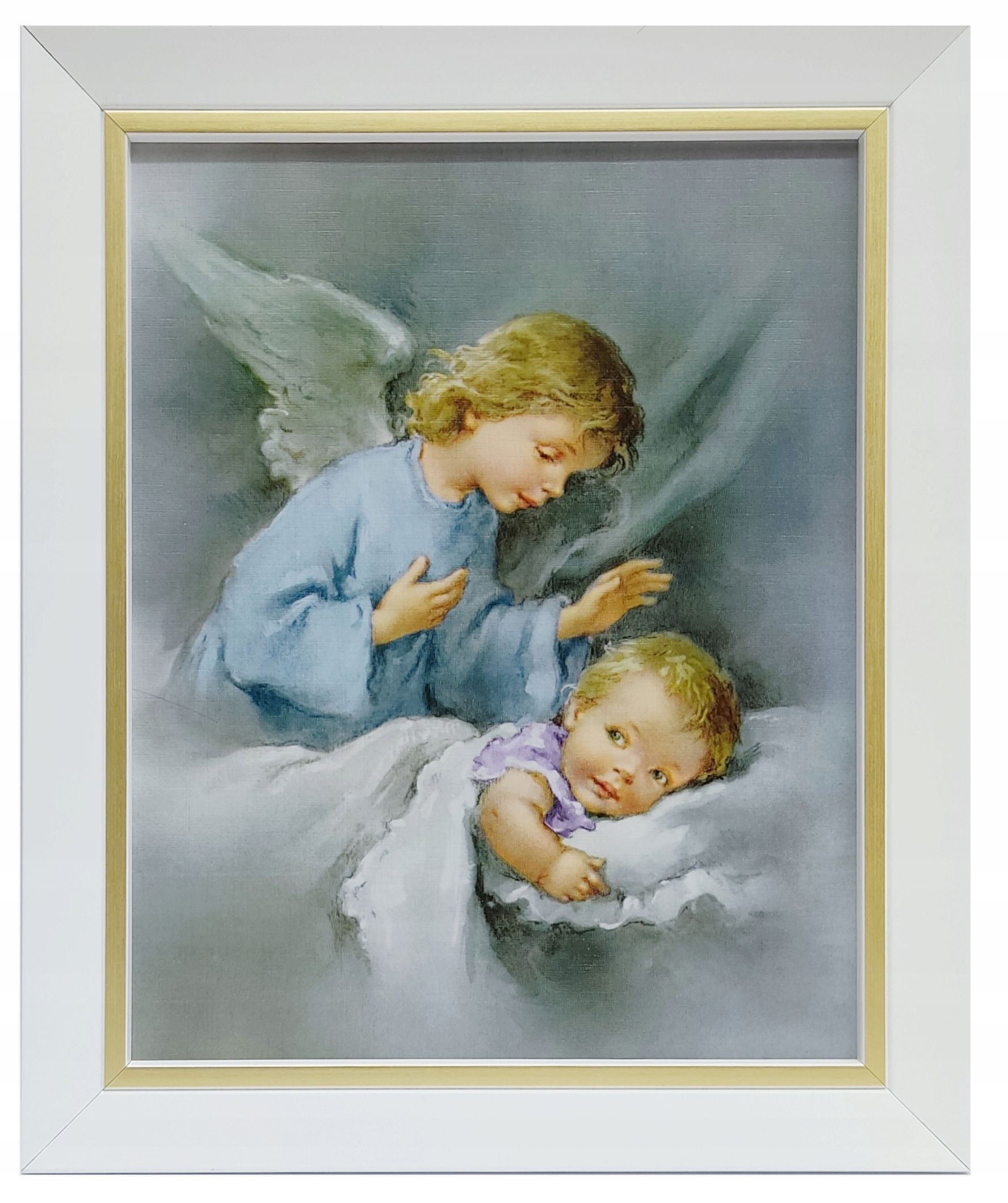 КАРТИНКА АНГЕЛА-ХОРОНЕЦЯ В БІЛІЙ РАМЦІ З ЗОЛОТОЮ СМУЖКОЮ