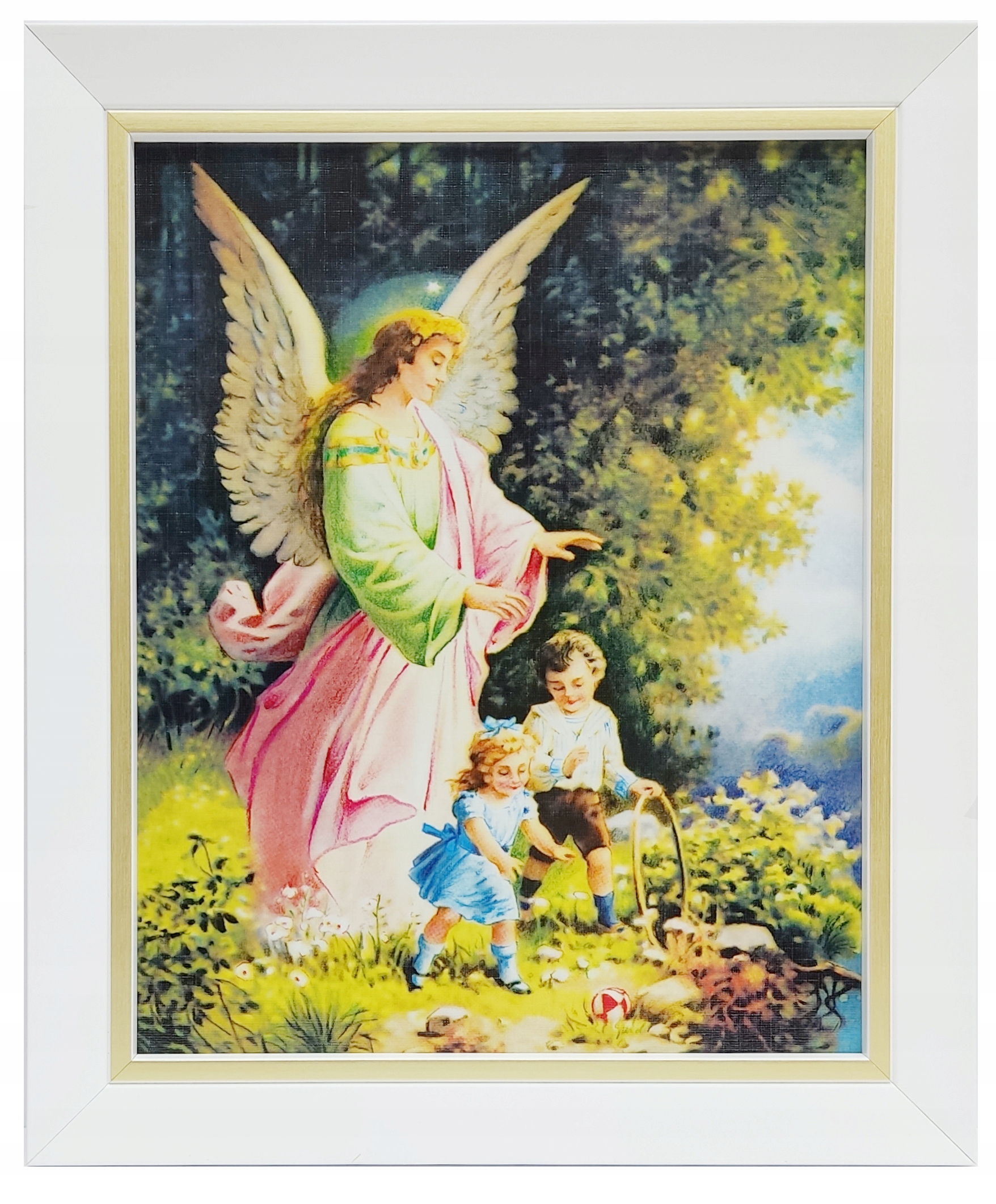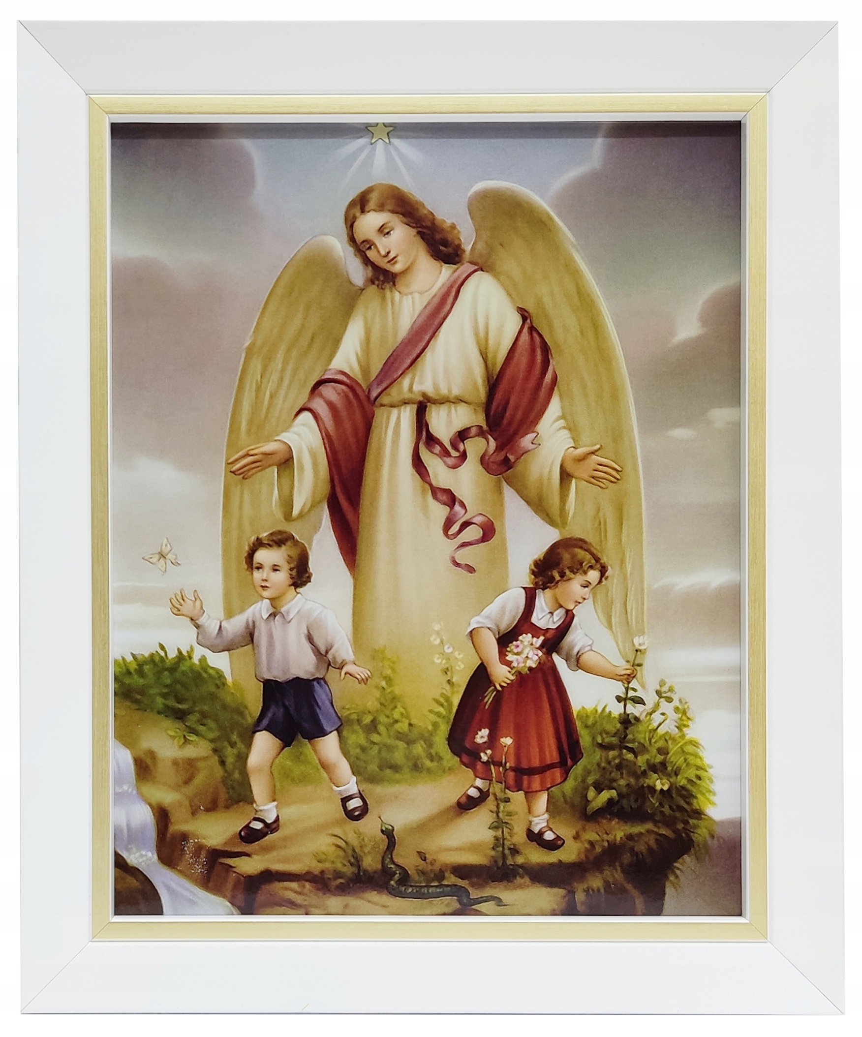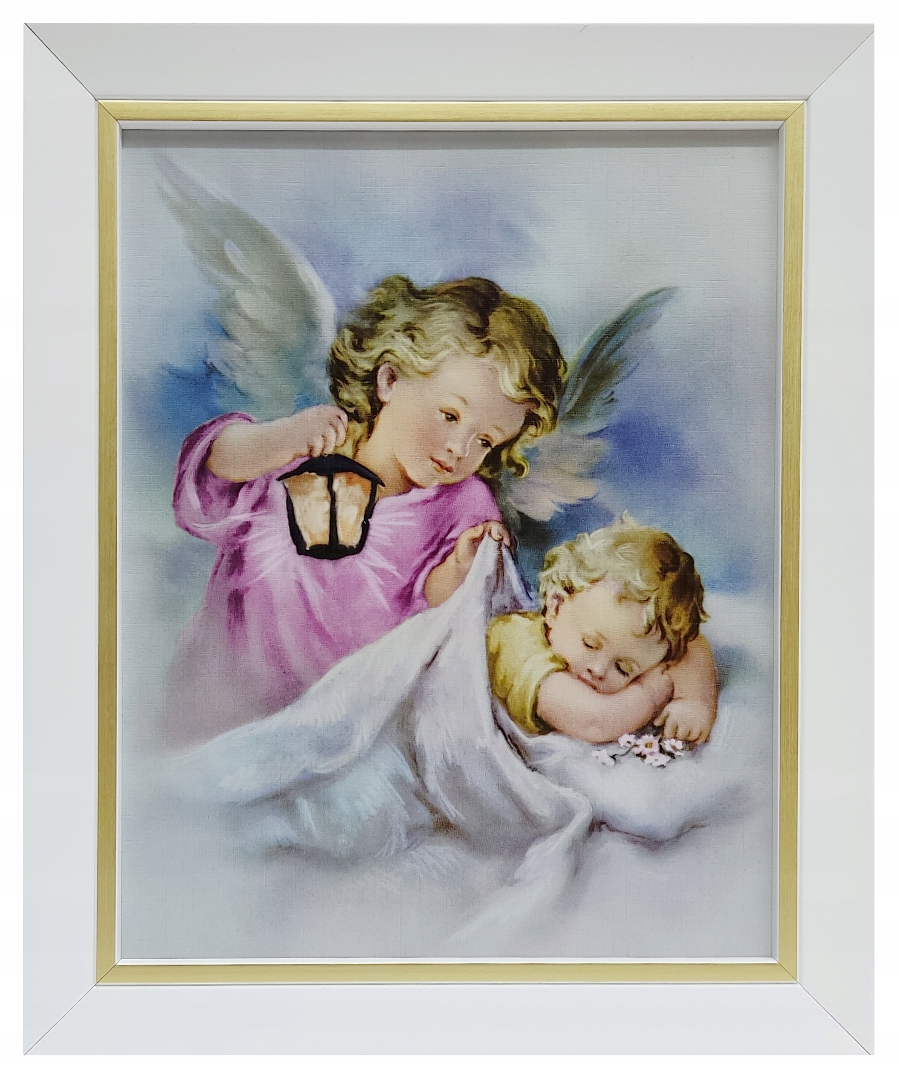КАРТИНКА АНГЕЛА-ХОРОНЕЦЯ В БІЛІЙ РАМЦІ З ЗОЛОТОЮ СМУЖКОЮ