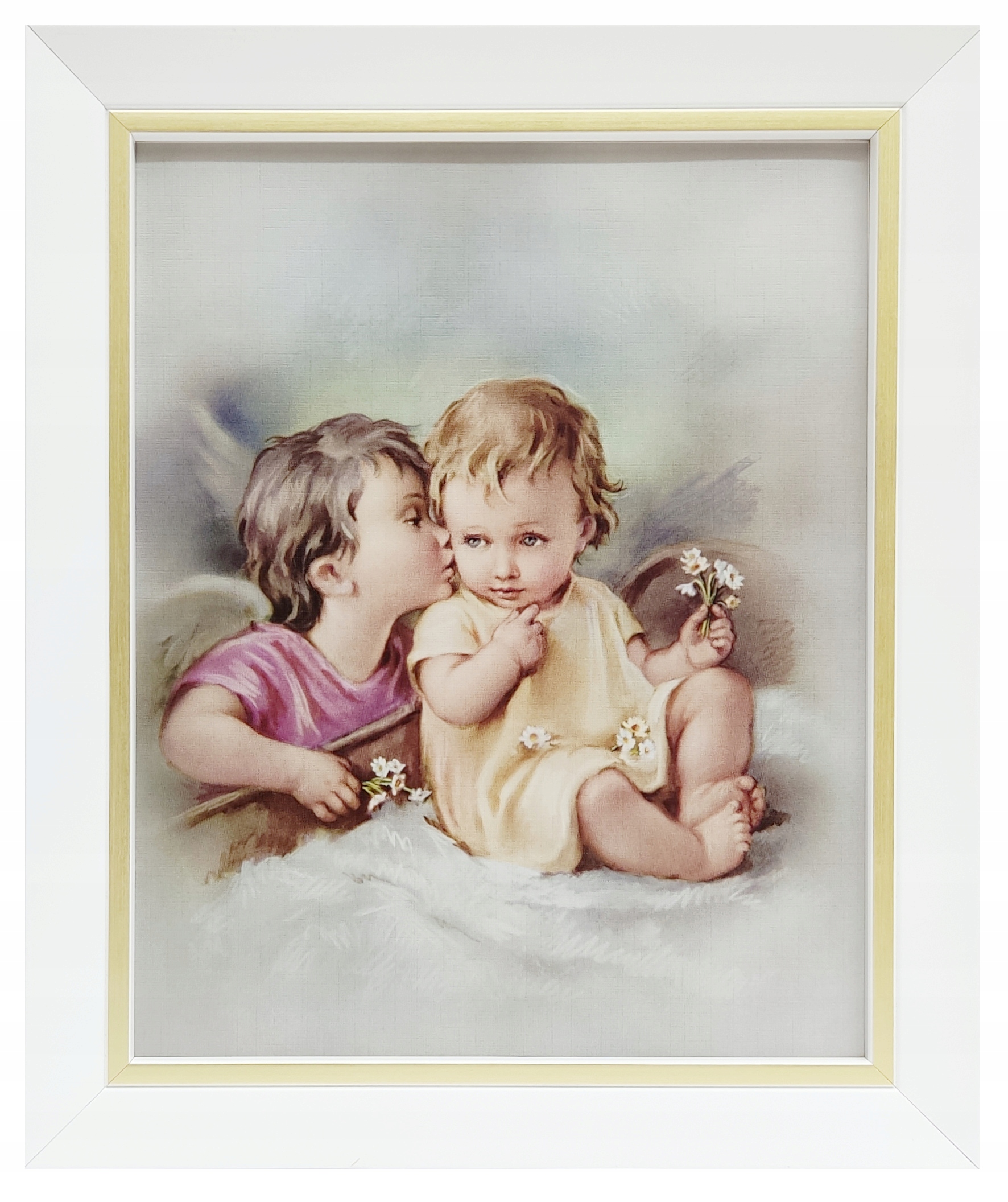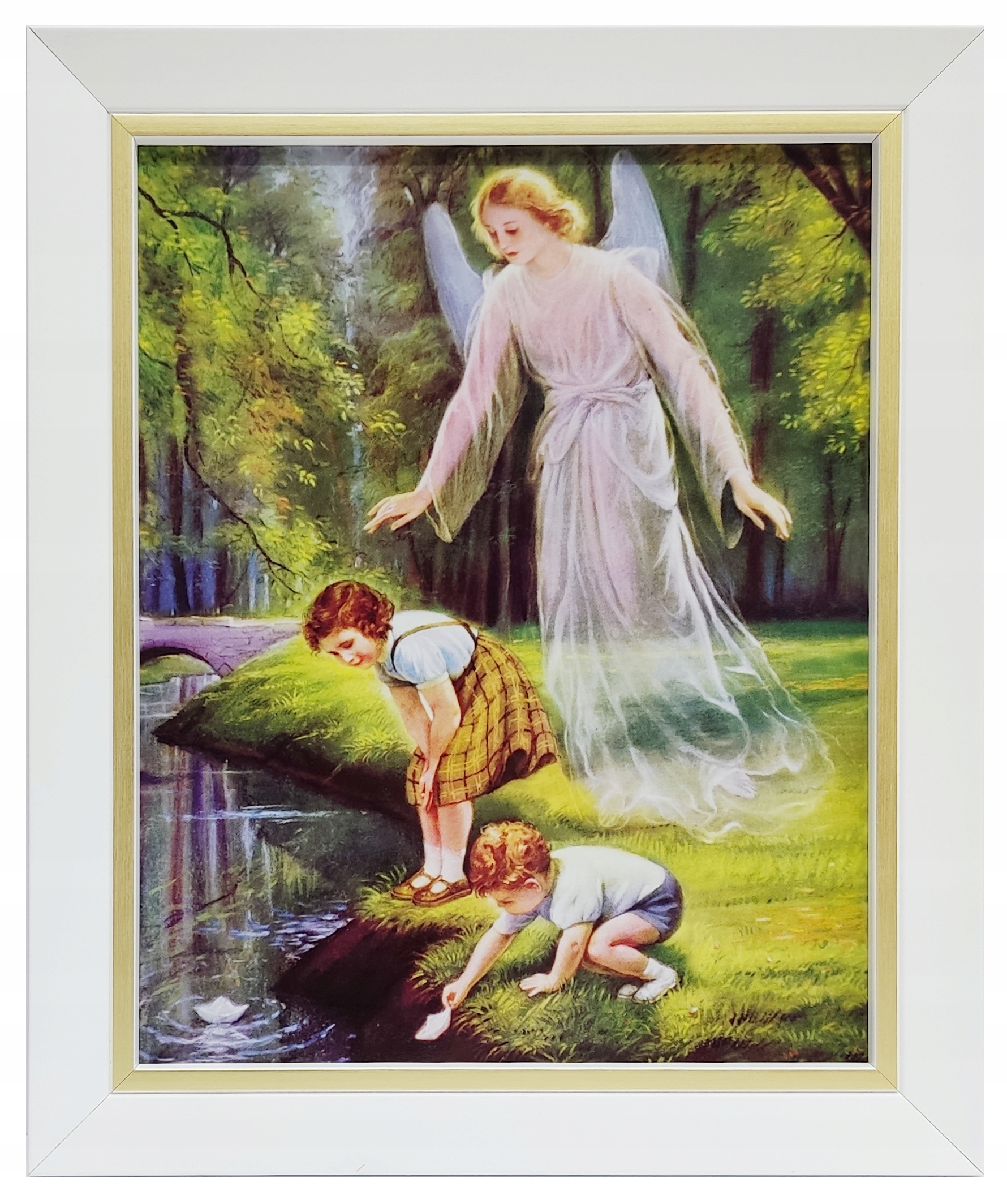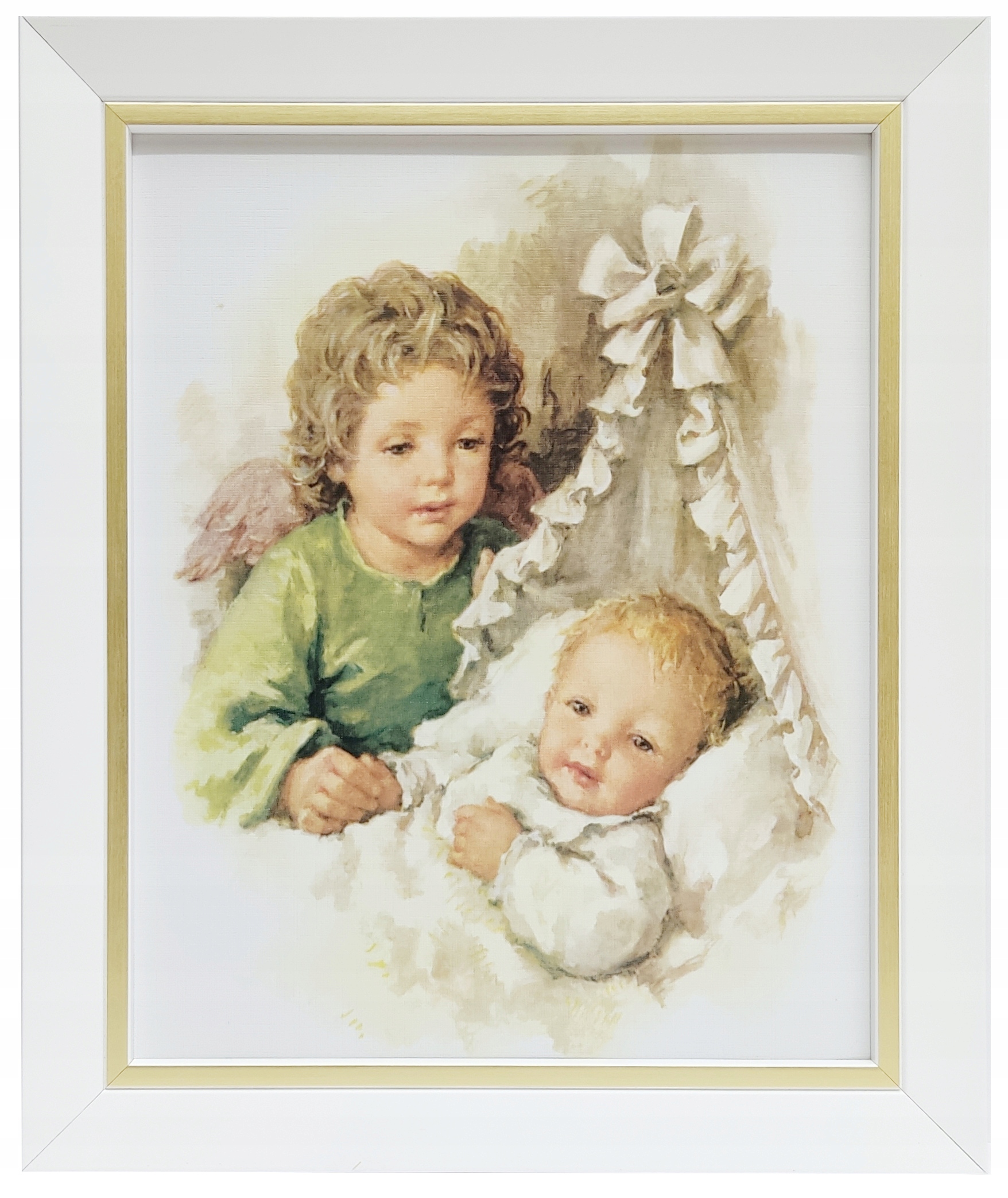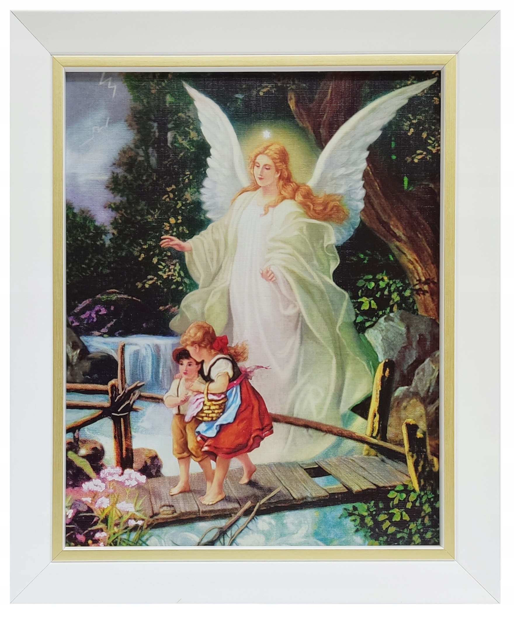 КАРТИНКА АНГЕЛА-ХОРОНЕЦЯ В БІЛІЙ РАМЦІ З ЗОЛОТОЮ СМУЖКОЮ