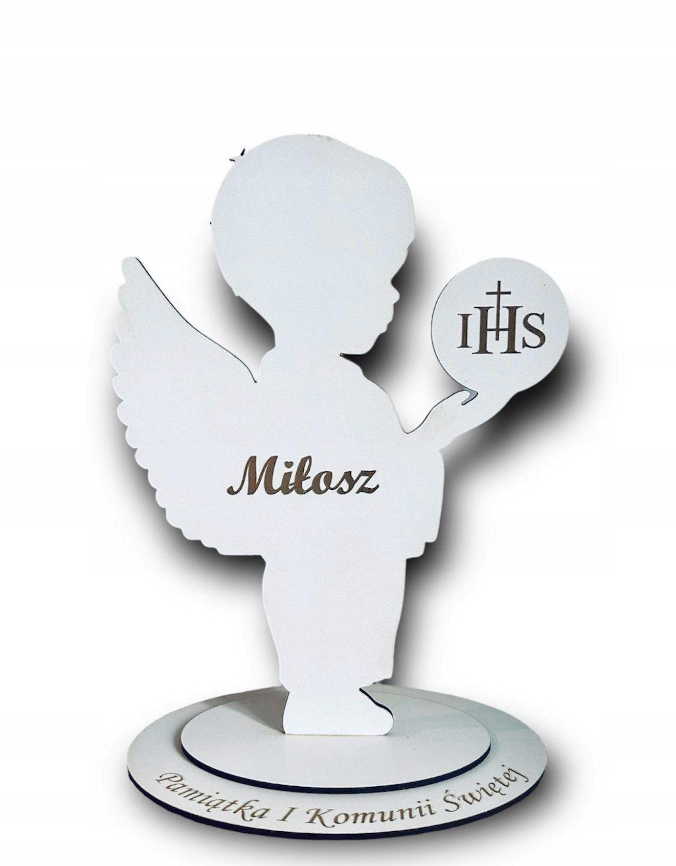 АНГЕЛ З ІМЕНЕМ СУВЕНІРИ ПРИЧАСТЯ 25см ДВОСТОРОННИЙ БІЛИЙ З ПІДСТАВКОЮ
