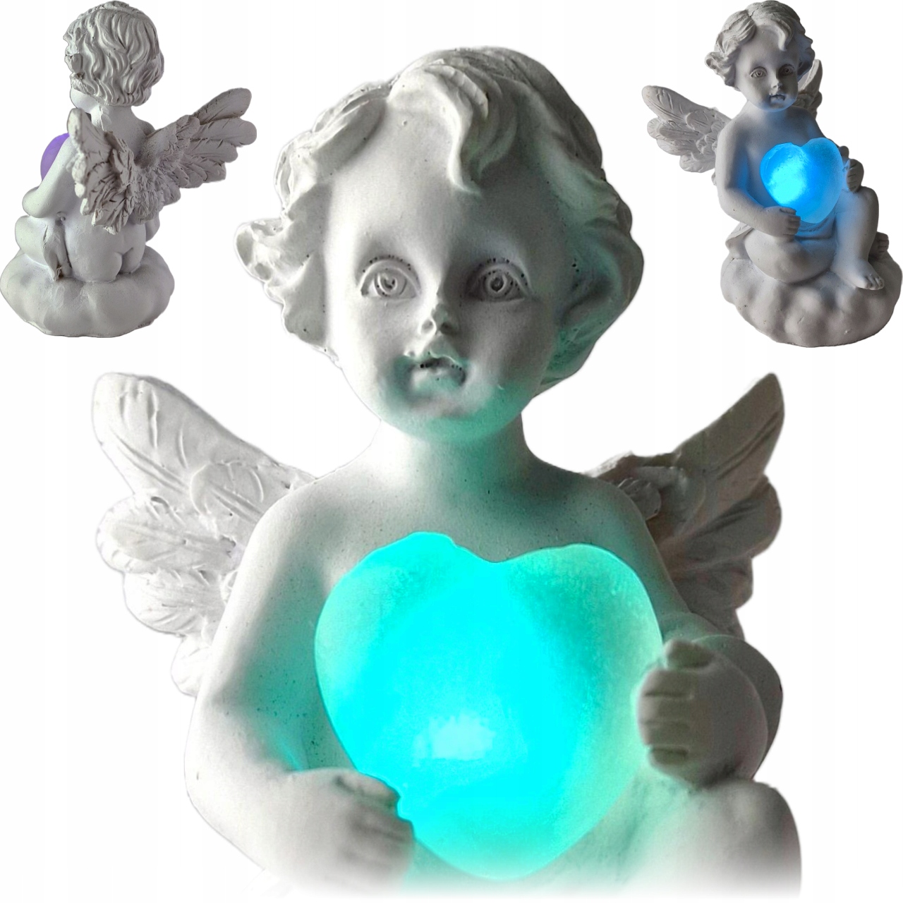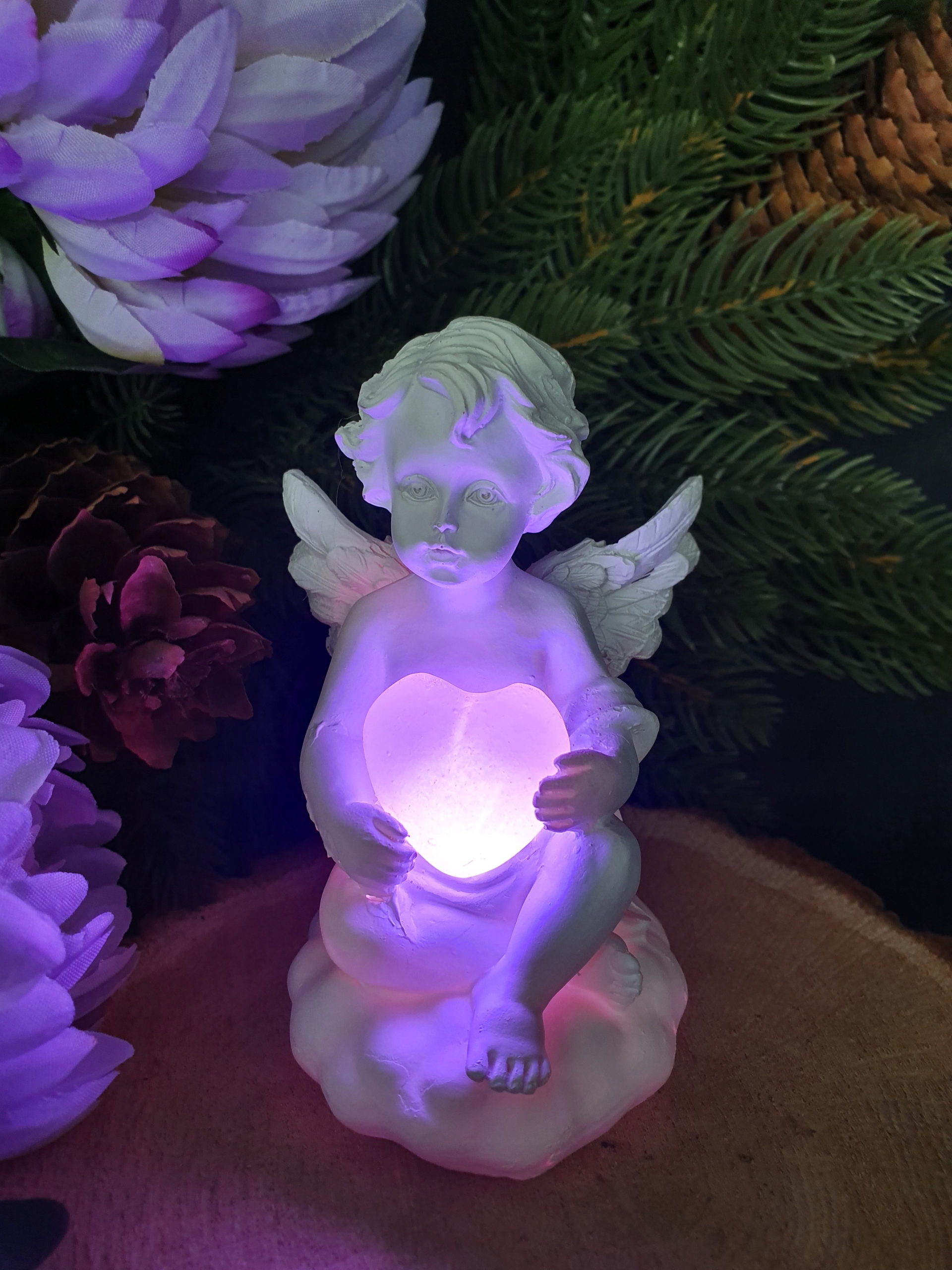 ANIOŁEK PODŚWIETLANY DEKORACJA LED Z SERCEM ŚWIECĄCYM FIGURKA ANIOŁKA