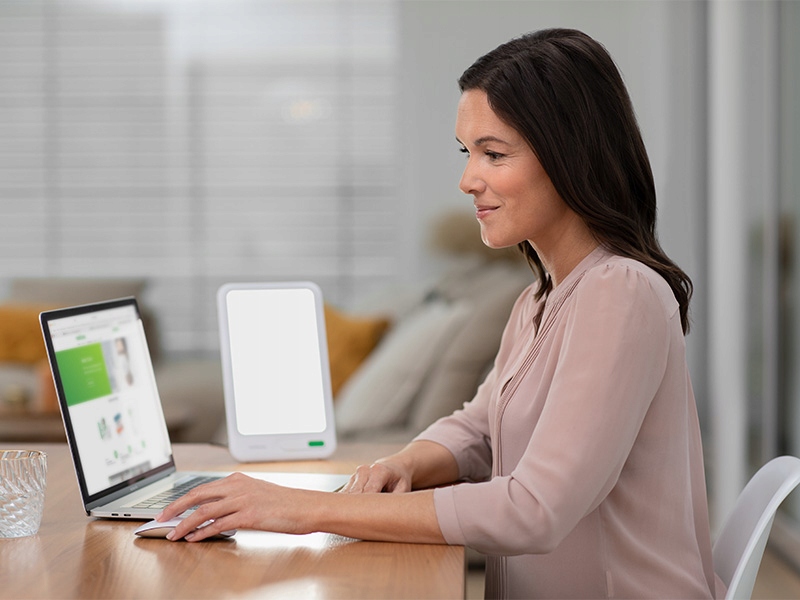 Використання терапевтичної лампи з білим світлом відразу після пробудження блокує вироблення мелатоніну, викликаючи позитивний настрій і готовність до дії.