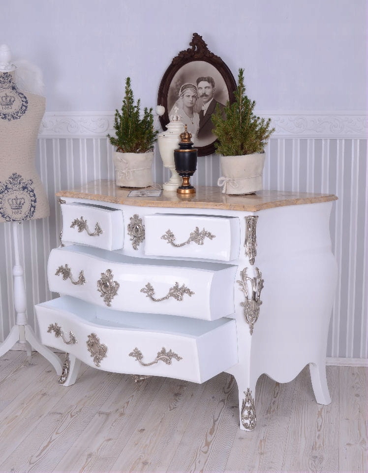 Antiques24 - Ludwikowska Biała комод із срібними прикрасами в стилі гламуру!